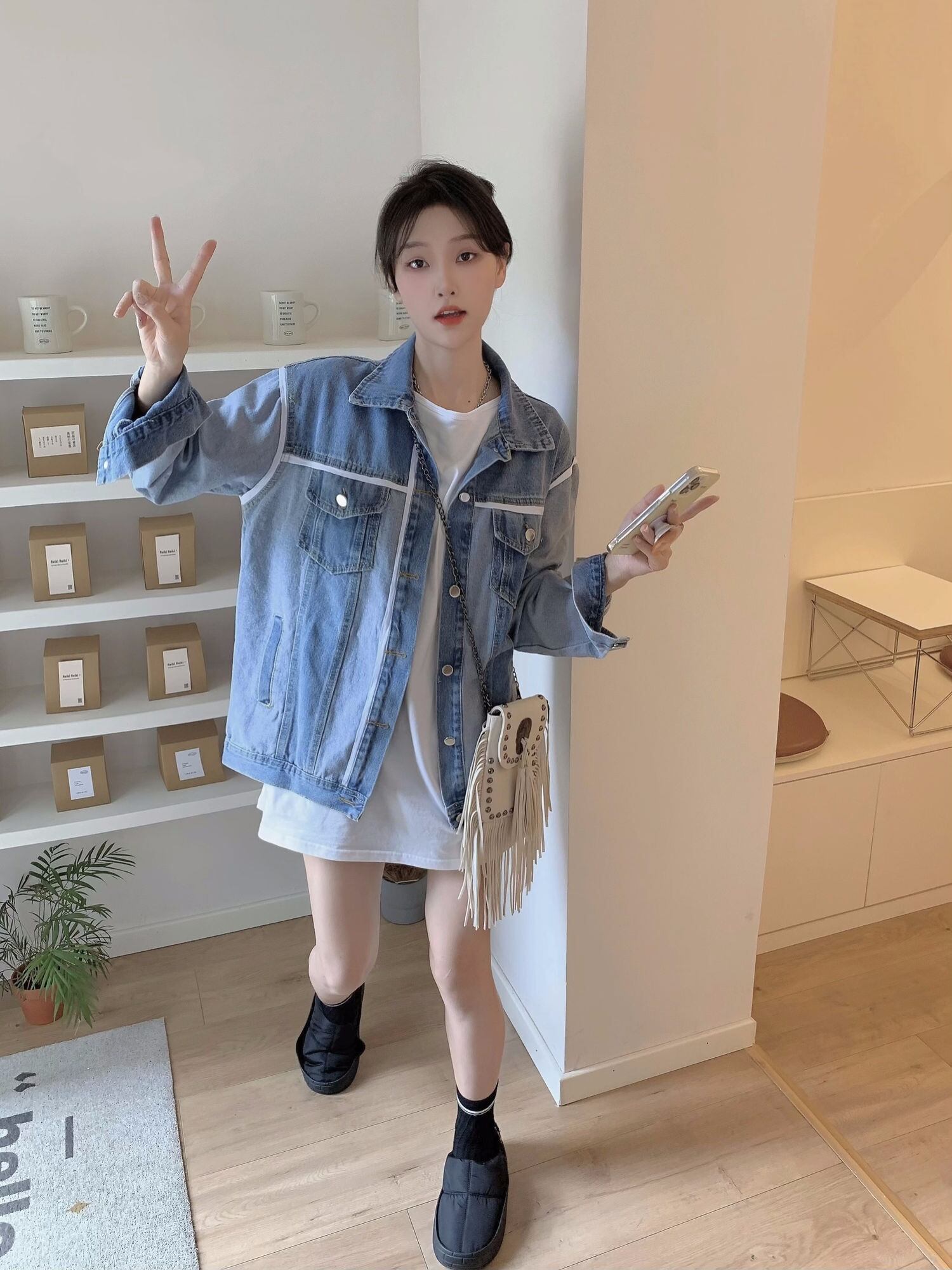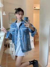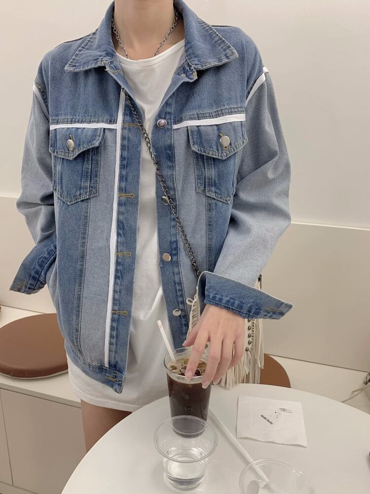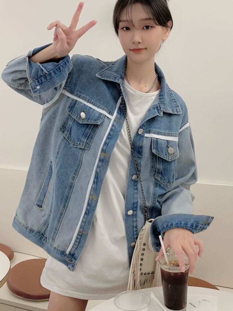 [EWQ] ストリート パッチワーク デニム ジャケットコントラスト シングル ブレスト ジャケット コート春秋トップ Y7033 スプリング 春物 オータム 秋物