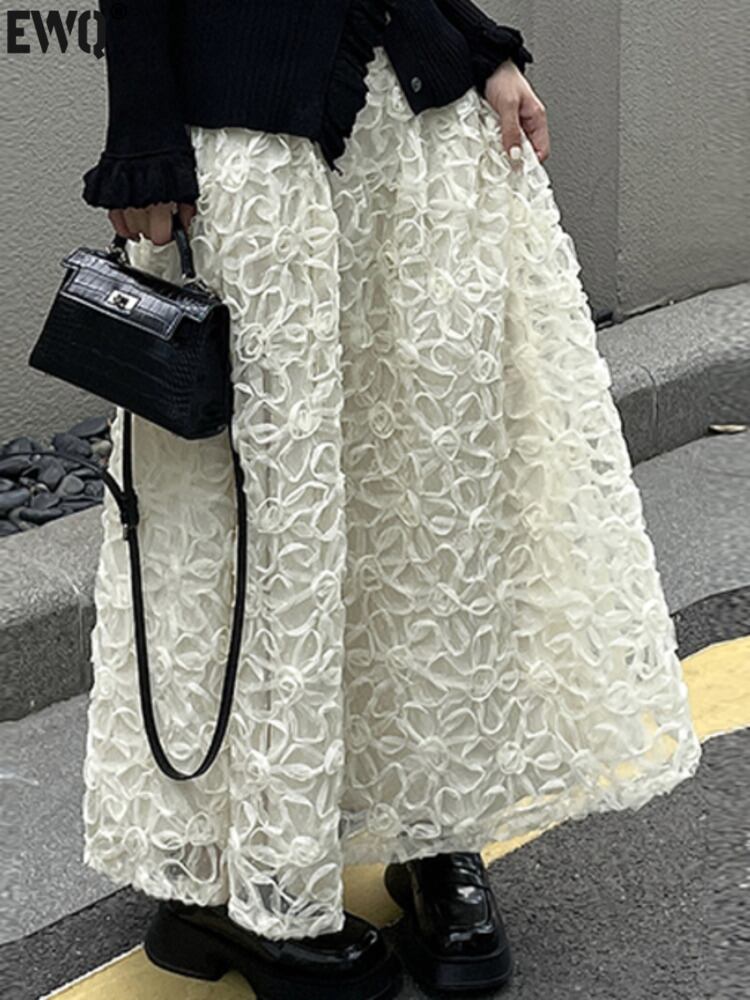 [EWQ] レース刺繍スカート花ゴムウエスト A ラインスカート春夏ファルダ 6Y6420 レッド エラスティック 伸縮 スプリング 春物 サマー 夏物 Aライン フラワーデザイン
