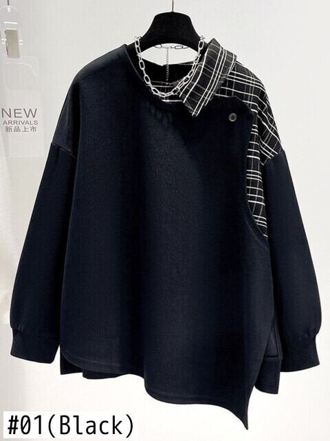 [EWQ] ストリート レディース 長袖 Oネック プルオーバー 春 チェック柄 スプライシング スウェットシャツ 美しい 16Y5641 ロング スプリング 春物