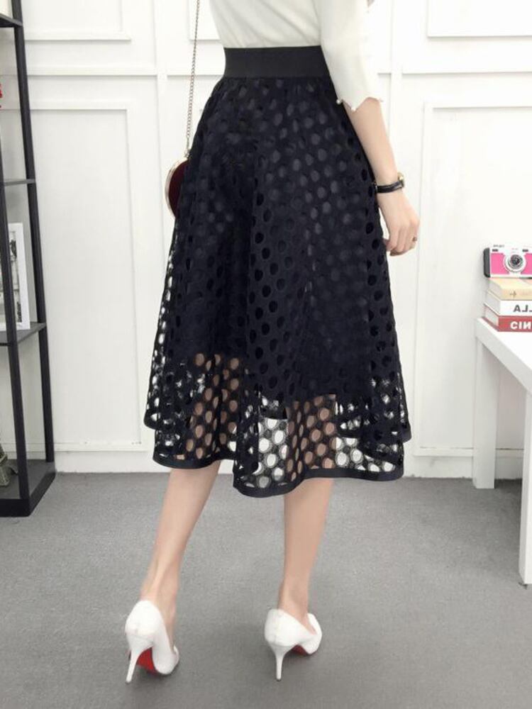 [EWQ] 中空ウエスト ティアード A ライン スカート春夏ブラック パーティー ミッドカーフ スカート 6Y6130 レッド スプリング 春物 サマー 夏物 Aライン