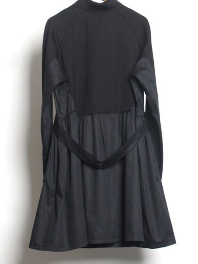 [EWQ] ベルト コート パッチワーク V ネック ジャケット コート春秋潮長袖ストリート ジャケット原宿 ロング かわいい スプリング 春物 オータム 秋物 ハーネス Vネック