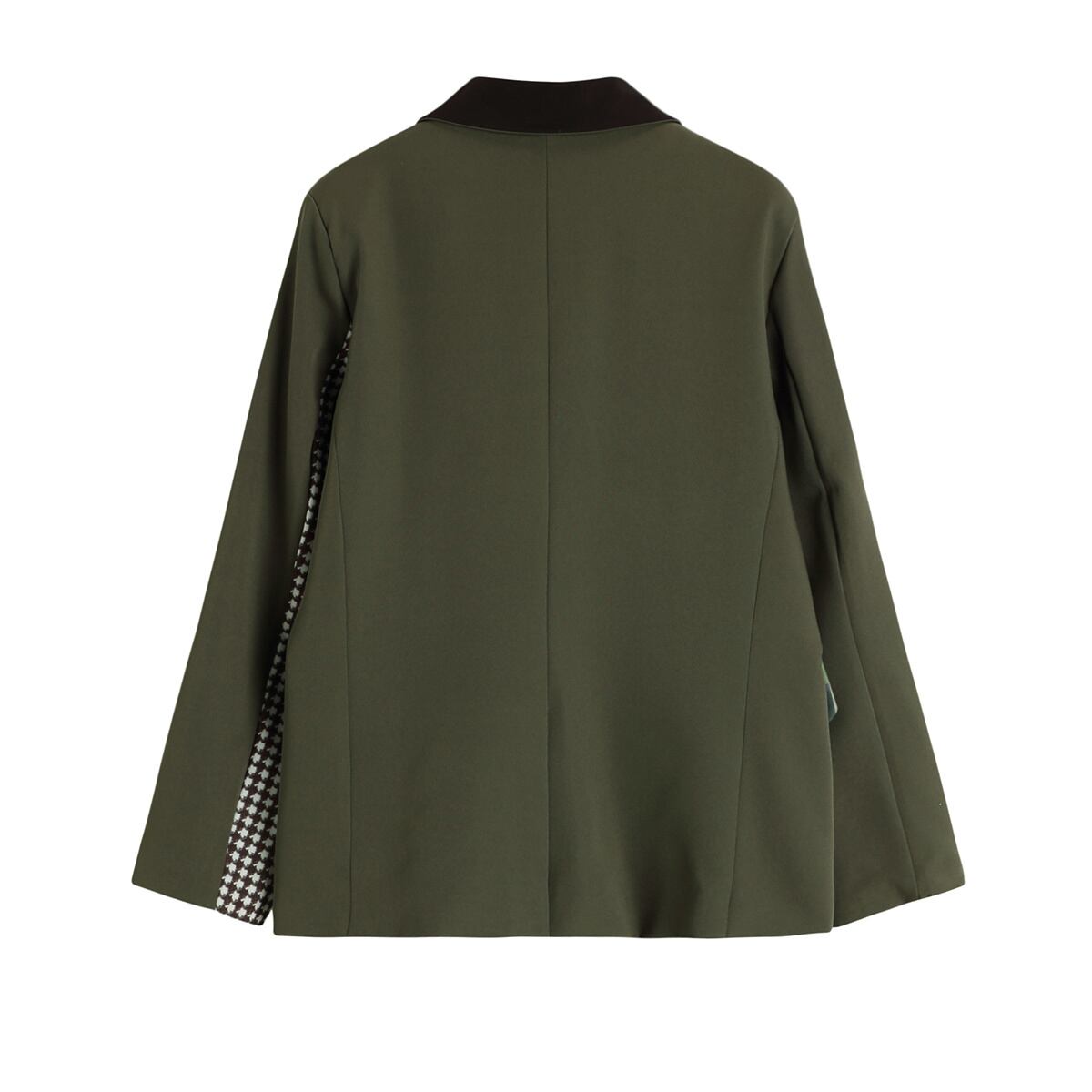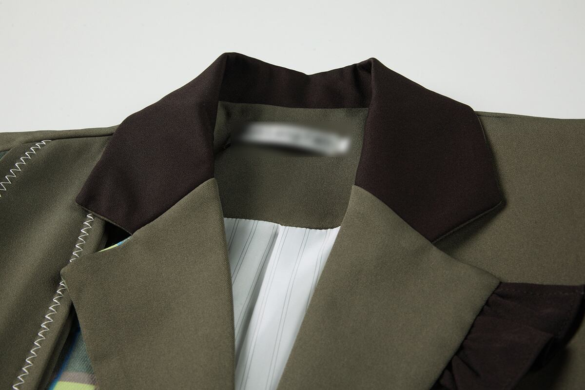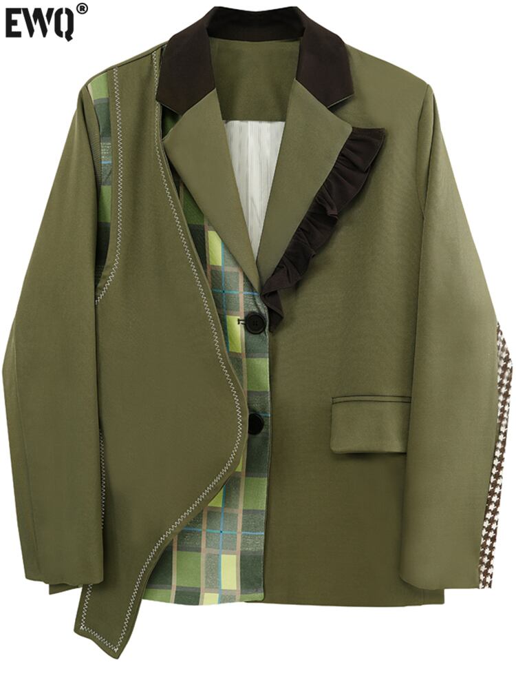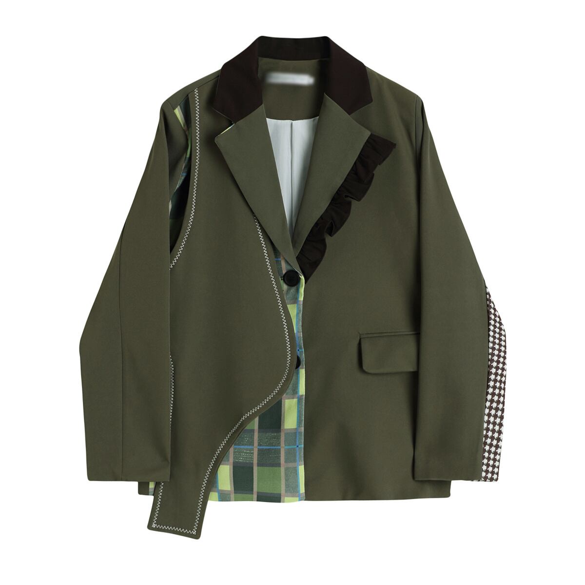 [EWQ] ストリート ゆったり パッチワーク スーツ ジャケット レディース 春 アーミーグリーン ブレザー イレギュラー スプライシング コート スプリング 春物