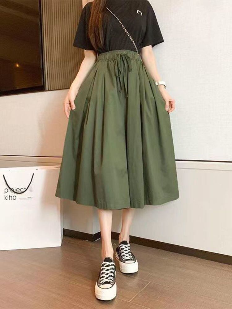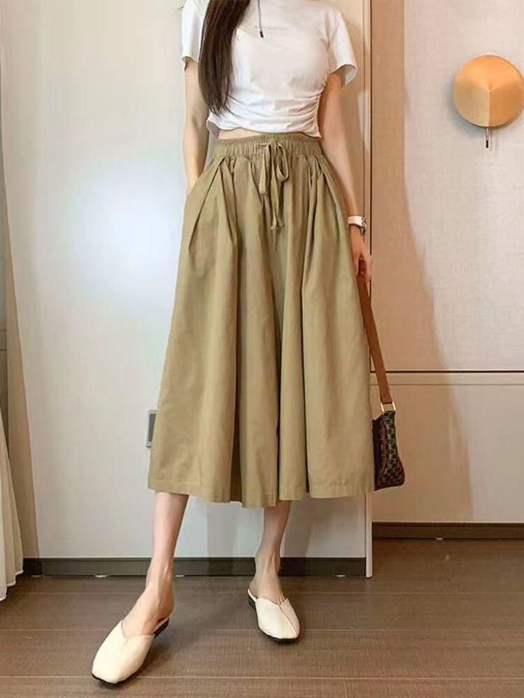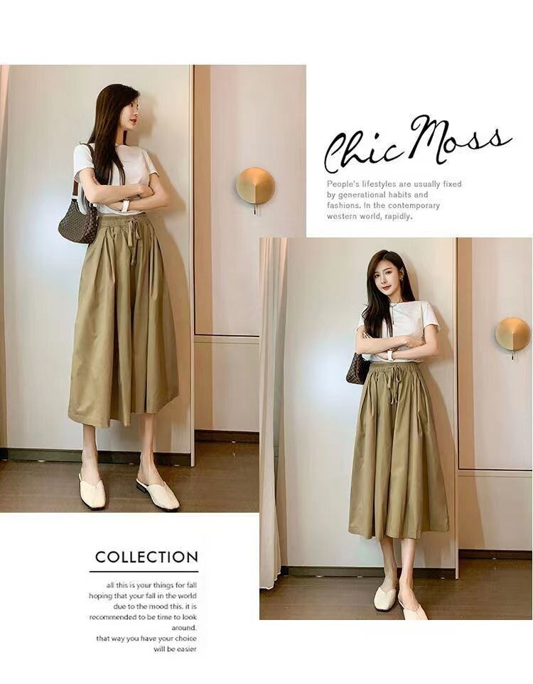 [EWQ] 巾着ワイドレッグパンツストリート A ライン弾性ウエストズボン春夏潮 6428 エラスティック 伸縮 スプリング 春物 サマー 夏物 Aライン ワイドパンツ