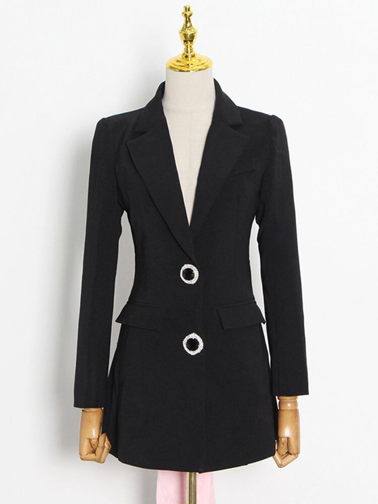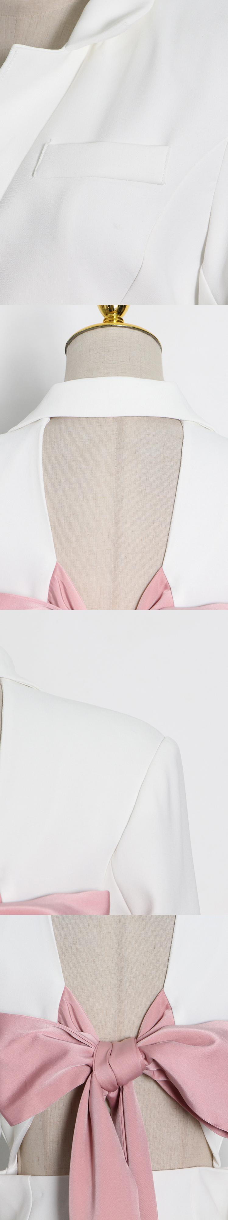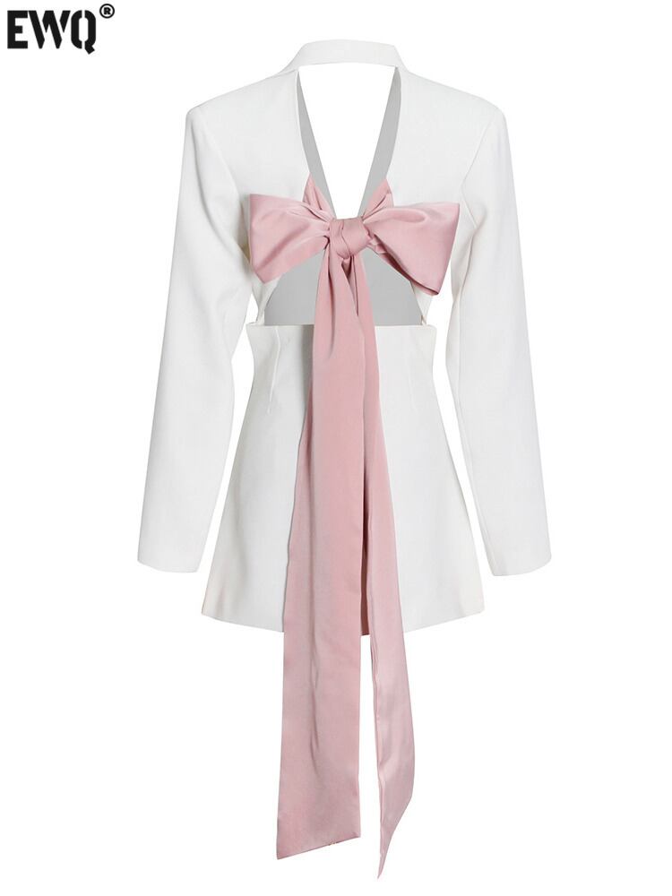 【EWQ】パッチワーク ちょう結び オフィス ブレザー レディース ノッチドカラー 長袖 黒 ブレザー ロング ブラック リボン 会社 学校 通勤や通学にも