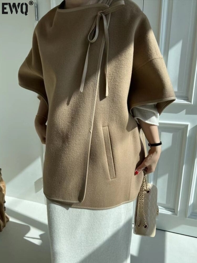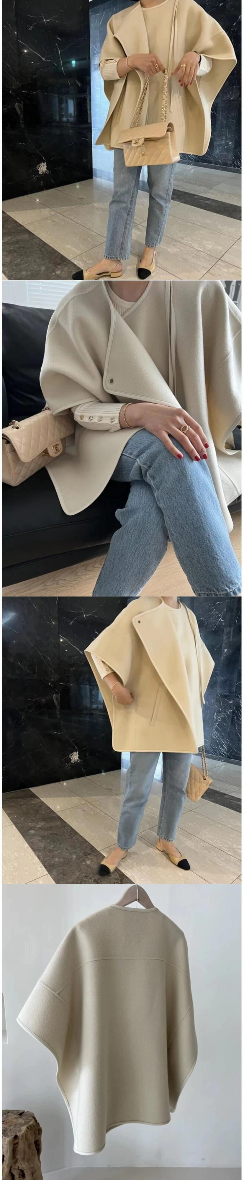 [EWQ] 春冬ウール コート ショール ケープバットウィング スリーブ厚いオーバー コート カシュミール マントルピース 16Y39 スプリング 春物 ウィンター 冬物