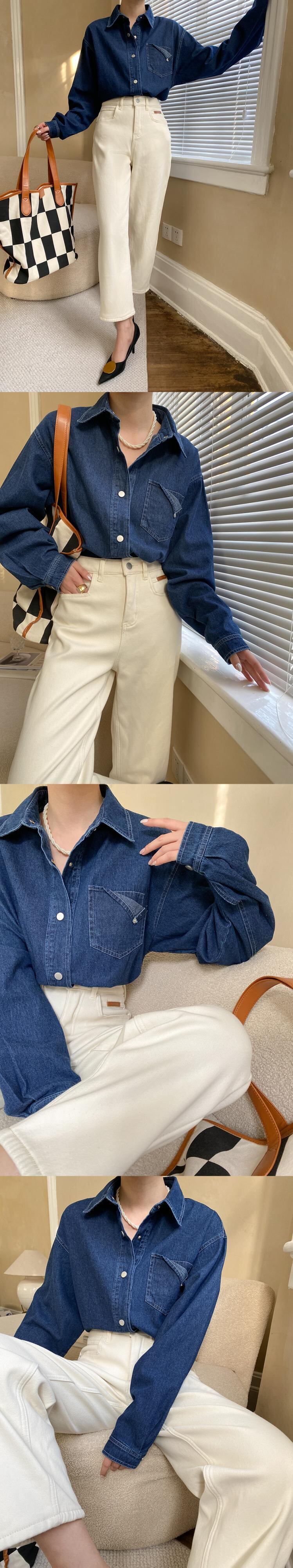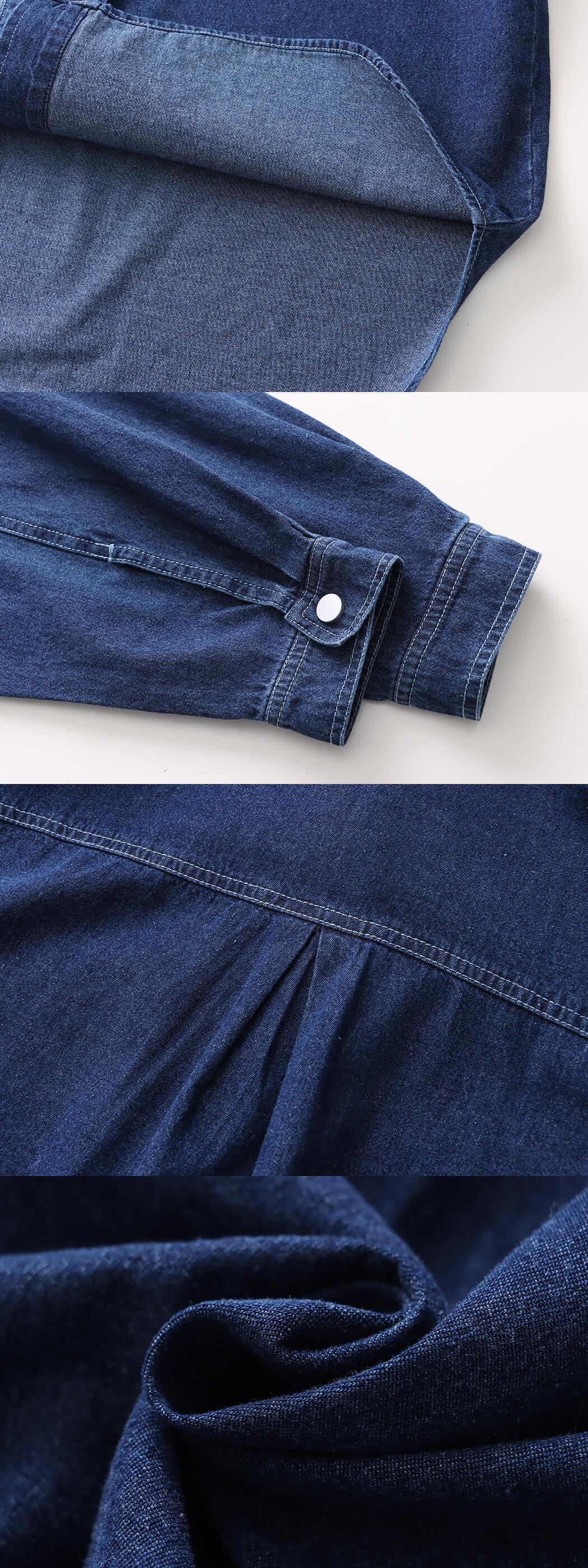[EWQ] エイブルポケットスプライシング長袖デニムシャツターンダウンカラーブラウス春秋トップ 16Y59 ロング スプリング 春物 オータム 秋物