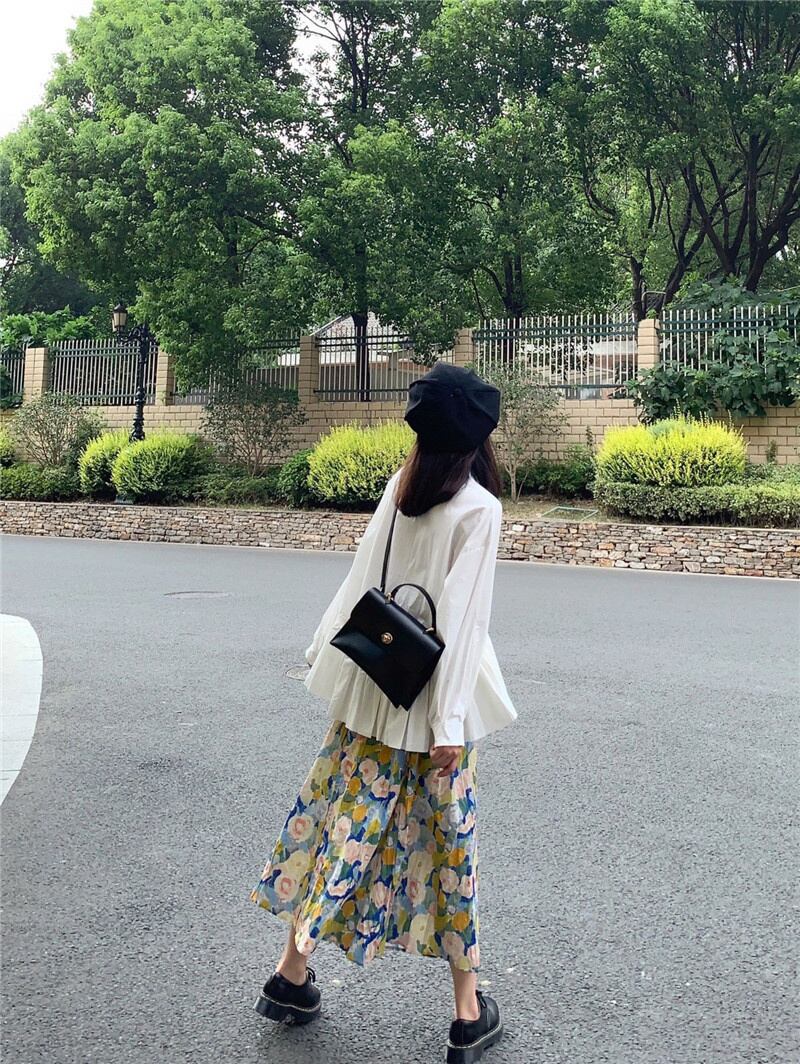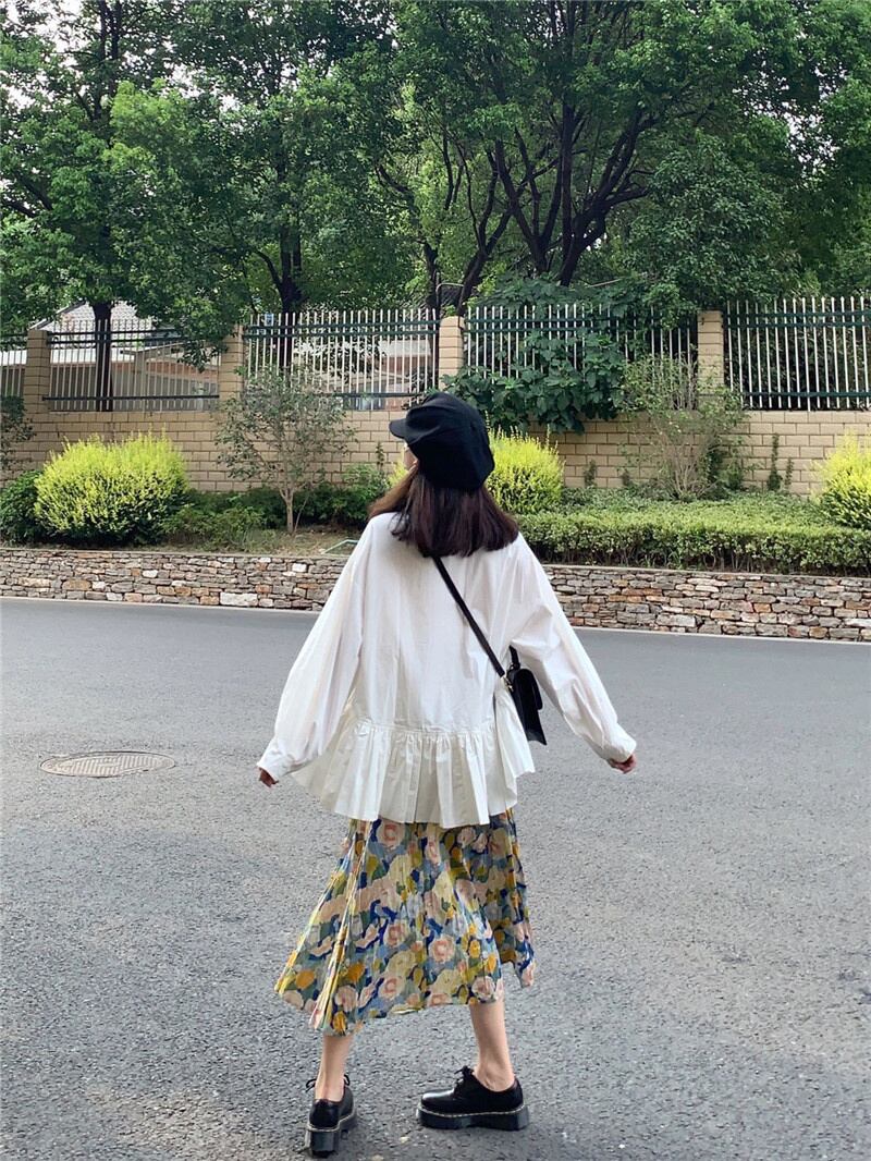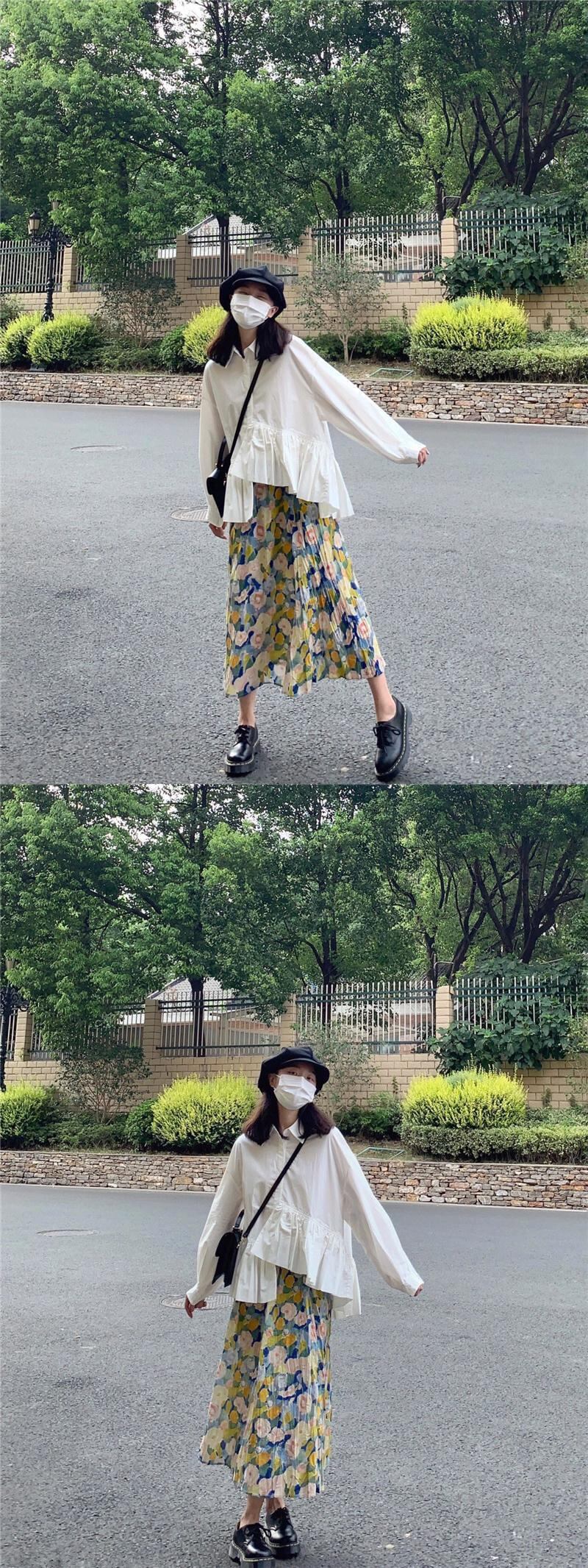 [EWQ] 不規則フリルシャツ無地パッチワーク長袖トップ春秋潮白トップス 16Y7978 ロング ホワイト スプリング 春物 オータム 秋物 ソリッドカラー
