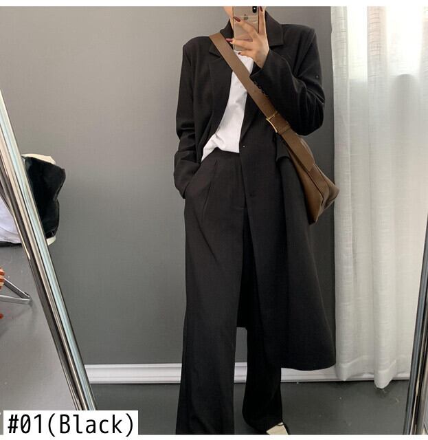 【EWQ】シック気質白ブレザーレディース秋ノッチルーズダブルブレストロングスリーブロングスーツジャケット ホワイト 長袖 オータム 秋物
