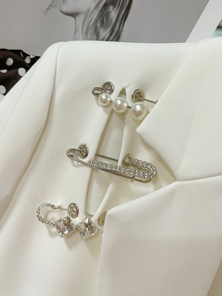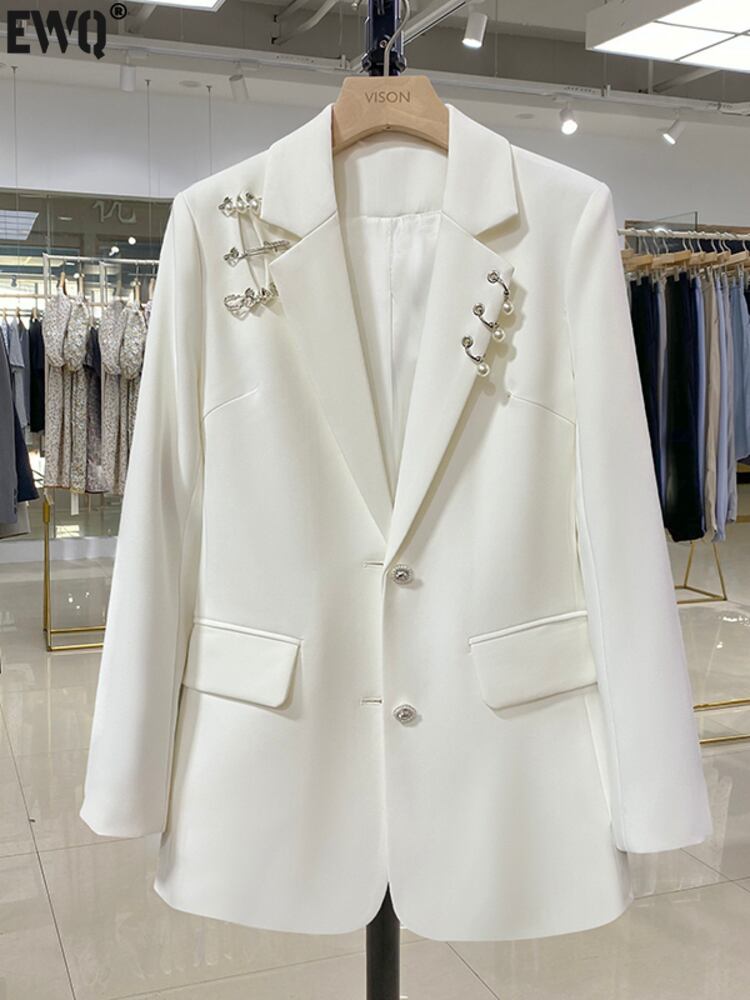 【EWQ】 レディース 長袖 ブローチつぎ ブレザー コート 春 秋 シック パール スーツ コート キレイめ トップス 16Y5 ロング スプリング 春物 オータム 秋物 真珠
