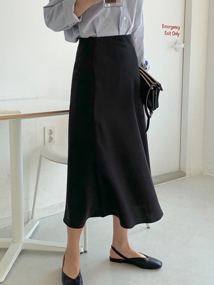 [EWQ] ウエストラインスカート レディース 無地 ミッドカーフスカート 春夏オールマッチ ファルダス スプリング 春物 サマー 夏物 Aライン ソリッドカラー