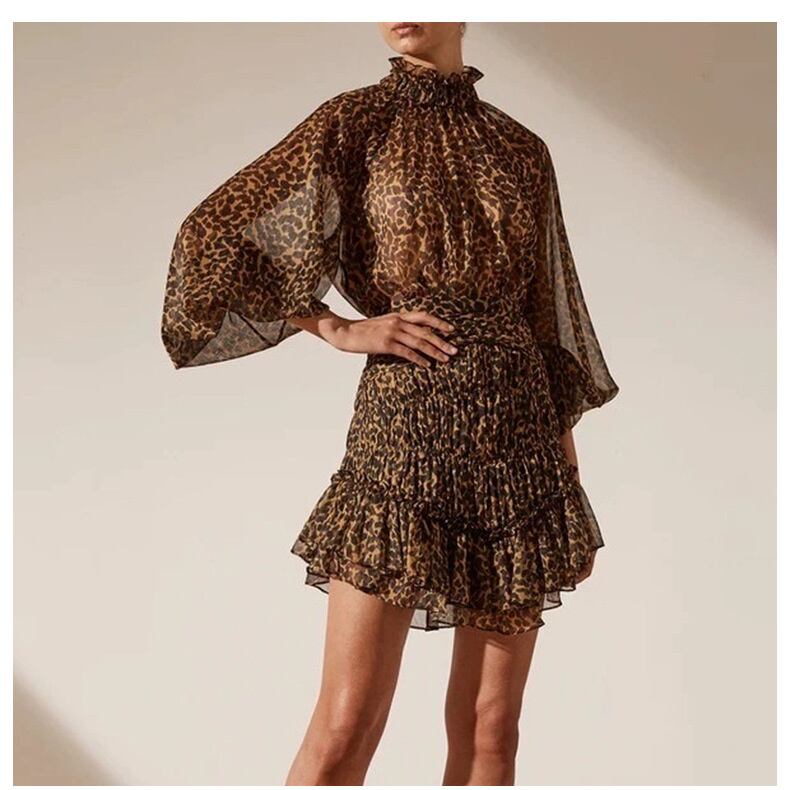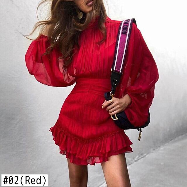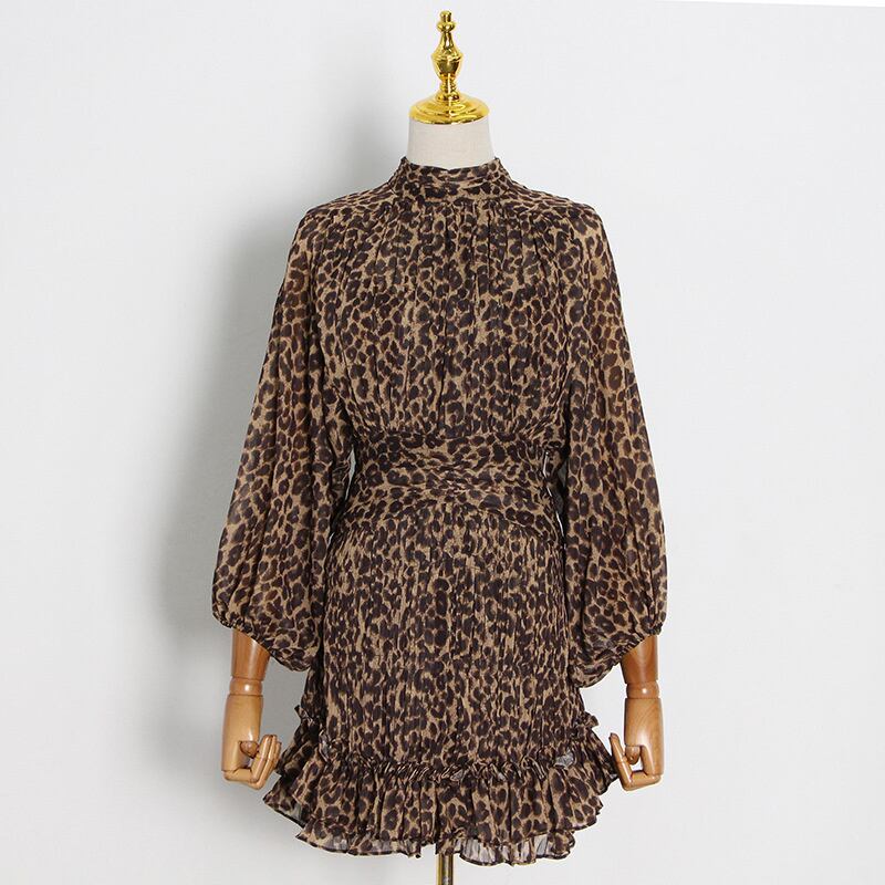 [EWQ] Sweet Loose Vestidos Runway One-piece Red Dress Lantern Sleeve Leopard Modern Lady ドレス レッド ランタンスリーブ 大人ガーリー スウィート キュート カジュアル