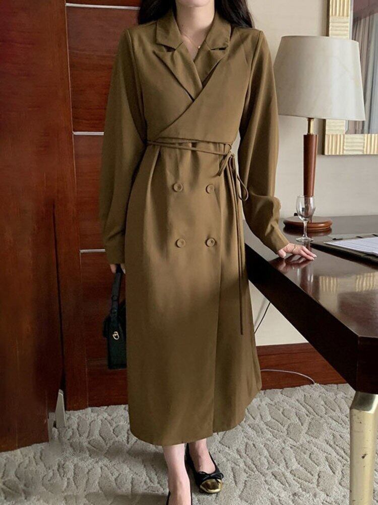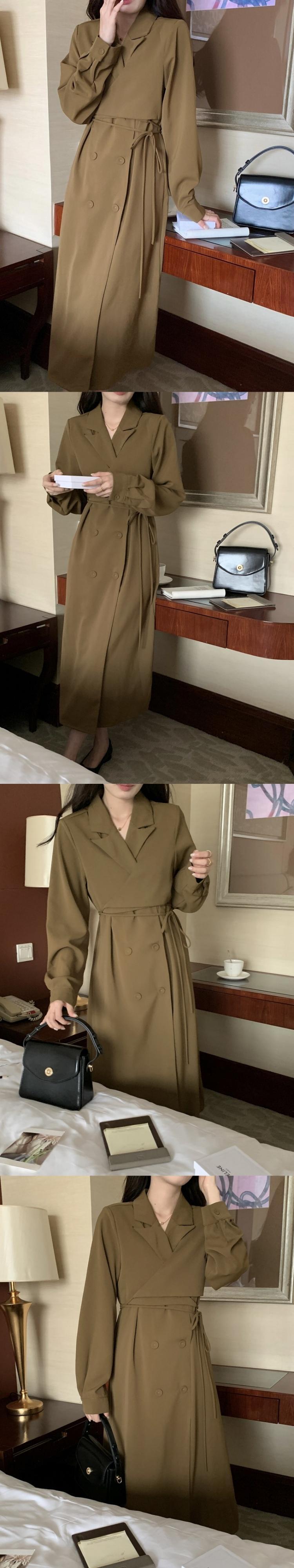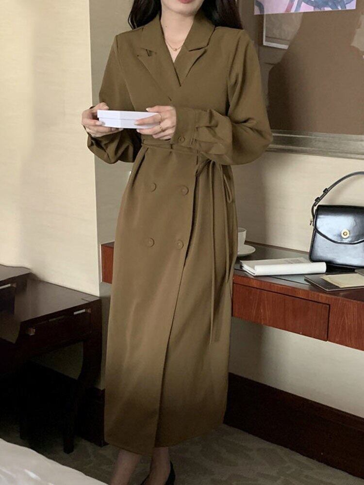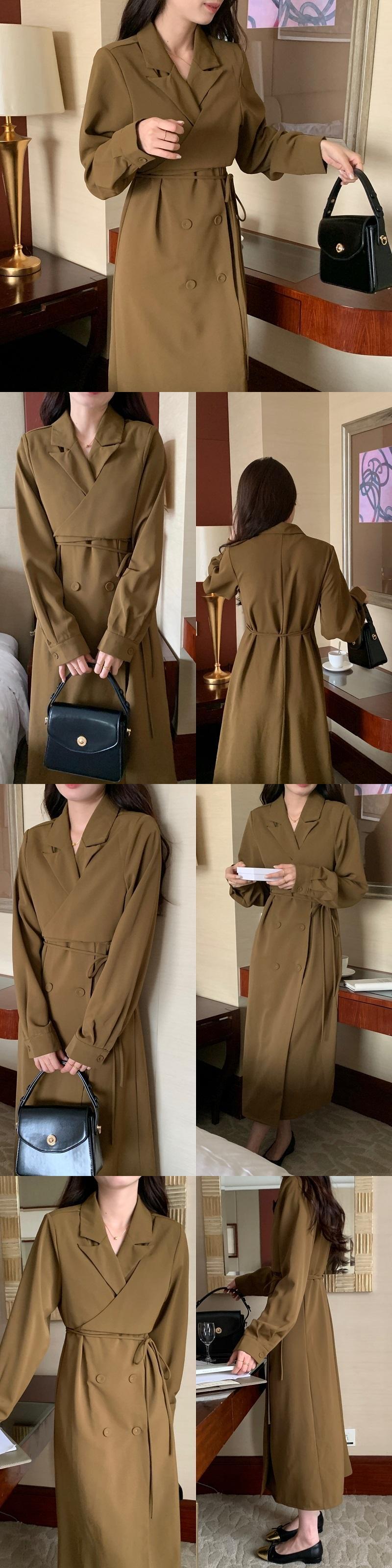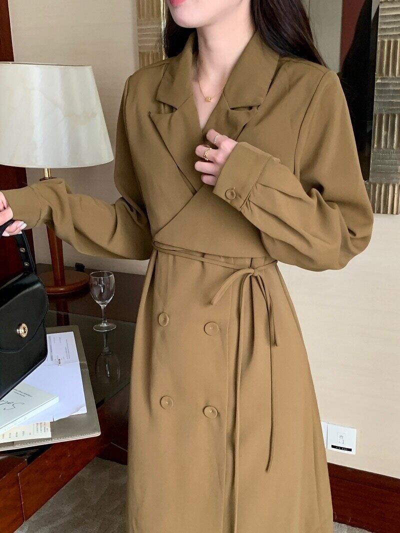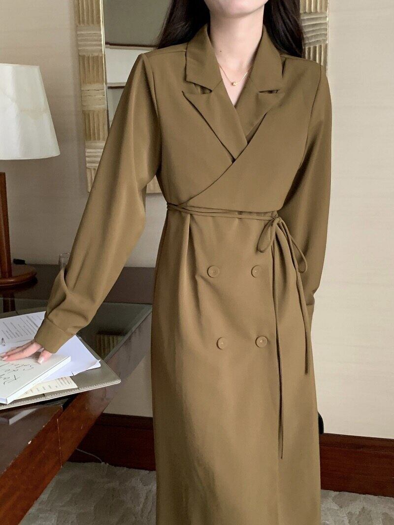 [EWQ] クロスタイダブルブレストフェイクツーピーススーツドレスレースアップドレス春秋 Vestidos スプリング 春物 オータム 秋物