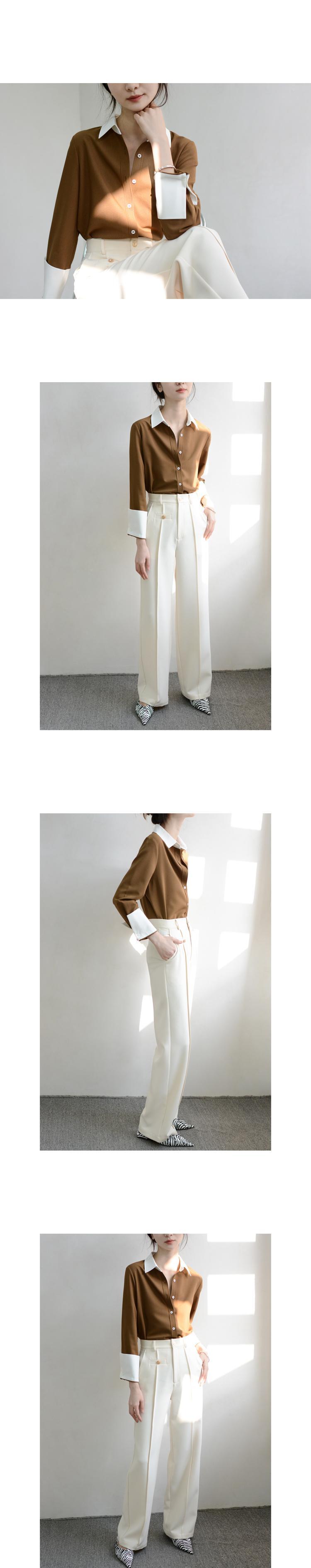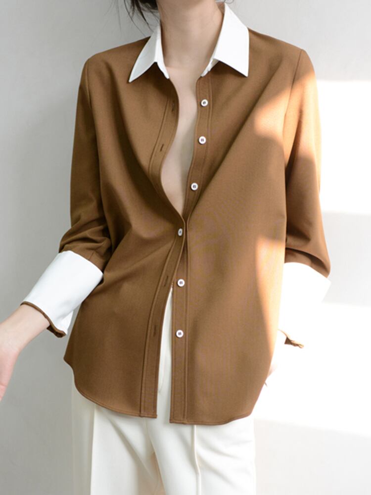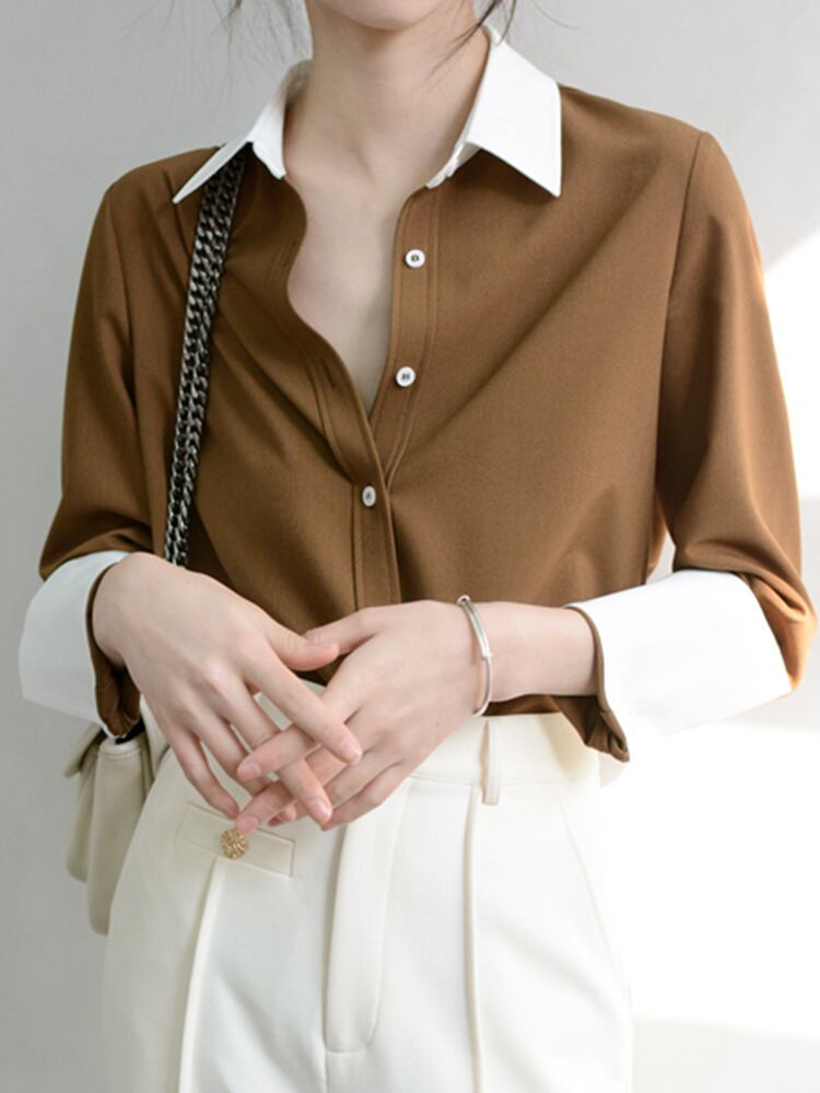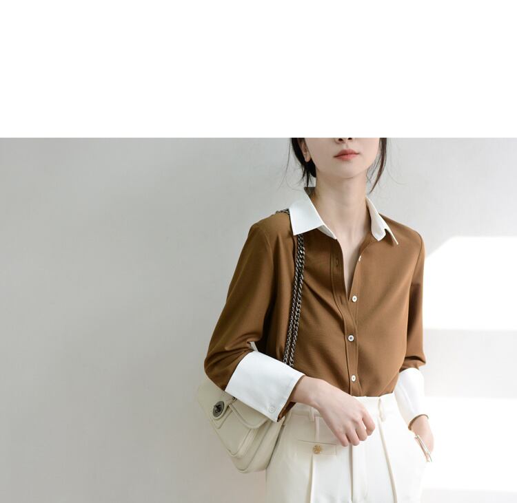 [EWQ] ラプル コントラスト カラー シャツ特大パッチワーク シングル ブレスト ブラウス春秋タイド トップ 6Y8162 スプリング 春物 オータム 秋物
