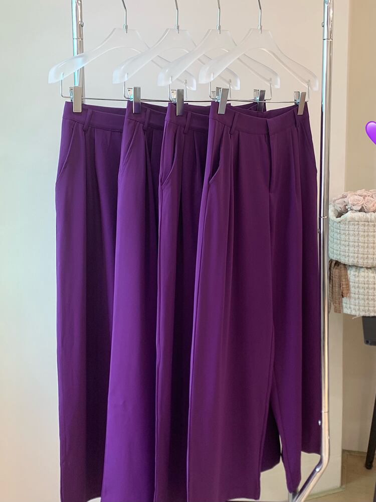 [EWQ] a パープル スーツ パンツ ウエスト ルーズ ルクソール ポケット ウィッジ レッグ ズボン 春 夏 潮 服 Y8153 スプリング 春物 サマー 夏物
