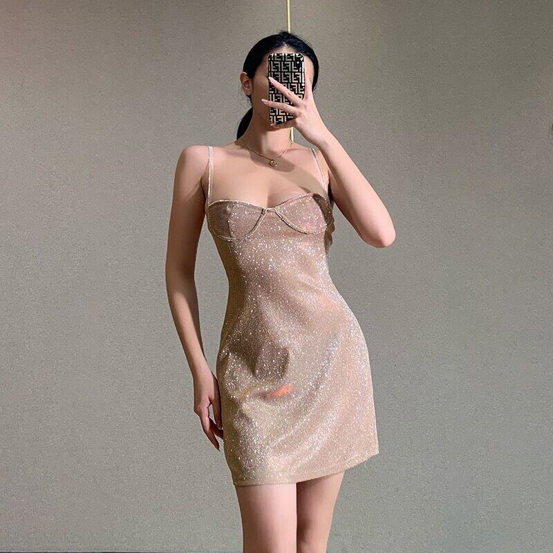 [EWQ] セクシーノースリーブ バックレス ドレス ピンク ダイヤモンド スパンコール スリング ドレス春夏 Vestido 821 スプリング 春物 サマー 夏物