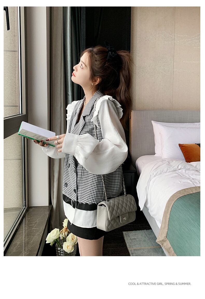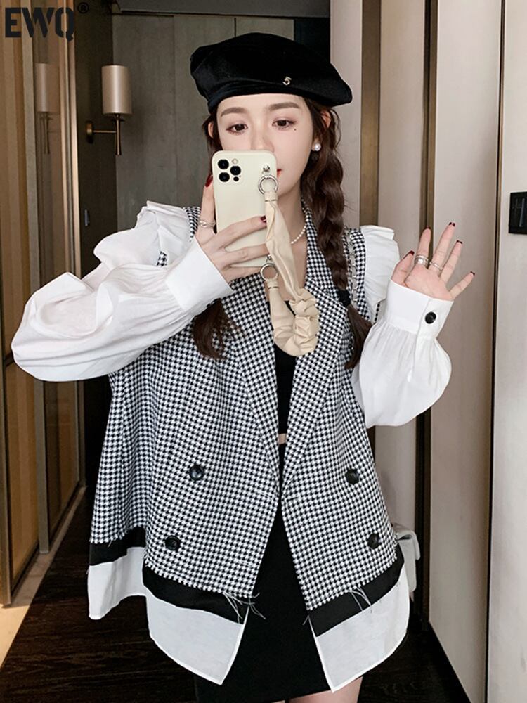 [EWQ] パッチワーク ダブルブレスト ブレザー コート フリル スプライス コントラスト スーツ ジャケット 春 秋 ルーズ トップ 16Y6995 スプリング 春物 オータム 秋物