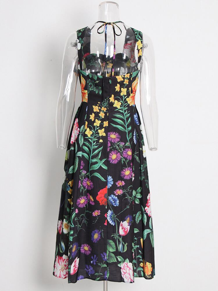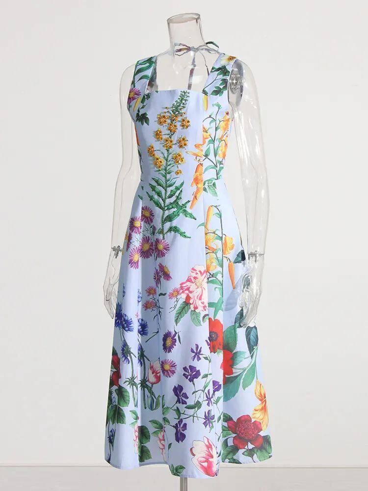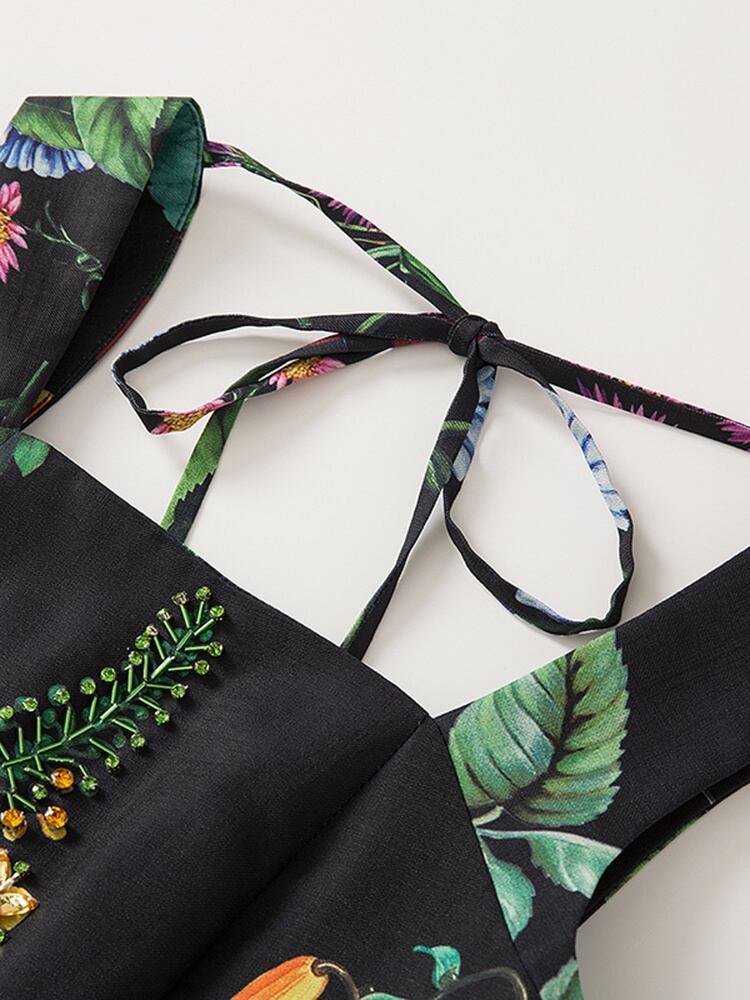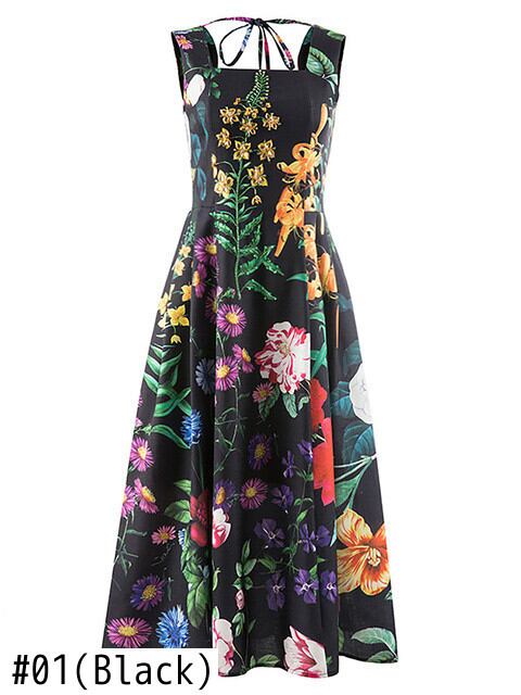 [EWQ] ビーズ ダイヤモンド ドレス スクエア ネック レースアップ ノースリーブ ウエスト プリント ドレス夏 Vestido 8037 サマー 夏物 スクウェア