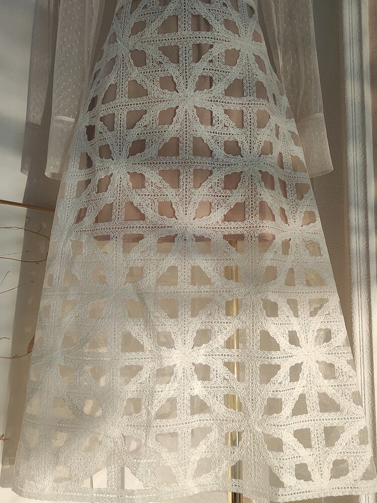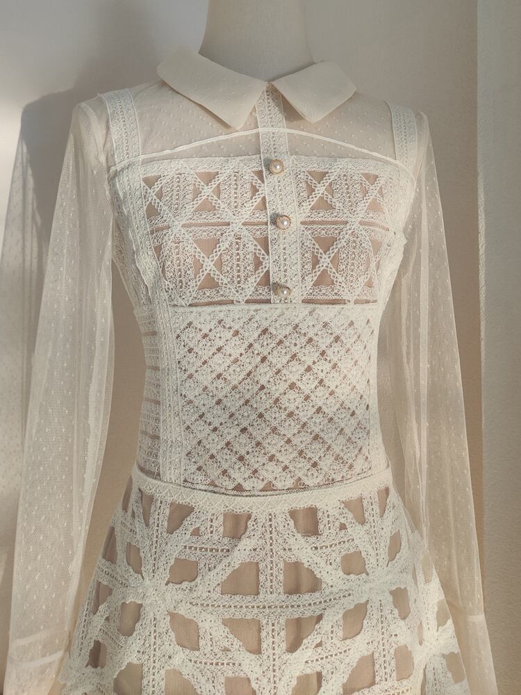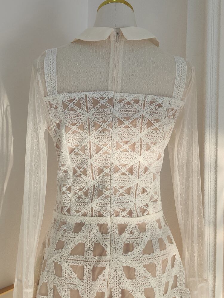 [EWQ] メッシュ レース透視刺繍ドレス長袖フック花イブニング ドレス春潮ジッパー Vestido ロング レッド スプリング 春物 フラワーデザイン