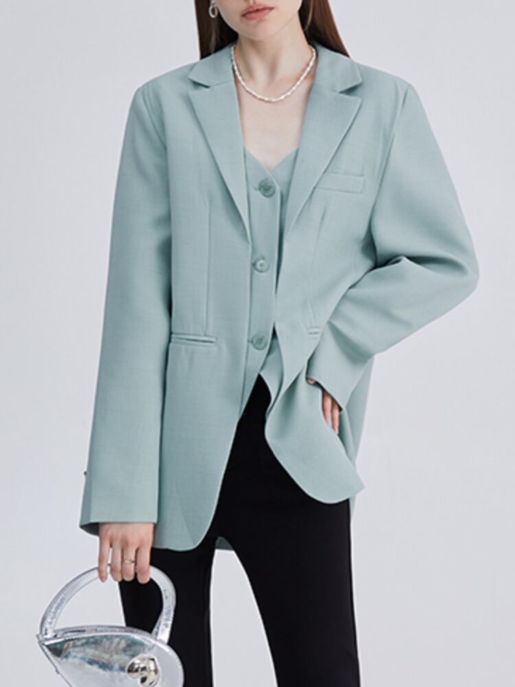 [EWQ] フェイクツーピースブレザーコート無地パッチワークノッチスーツジャケット春夏潮長袖トップ 535 ロング スプリング 春物 サマー 夏物 ソリッドカラー