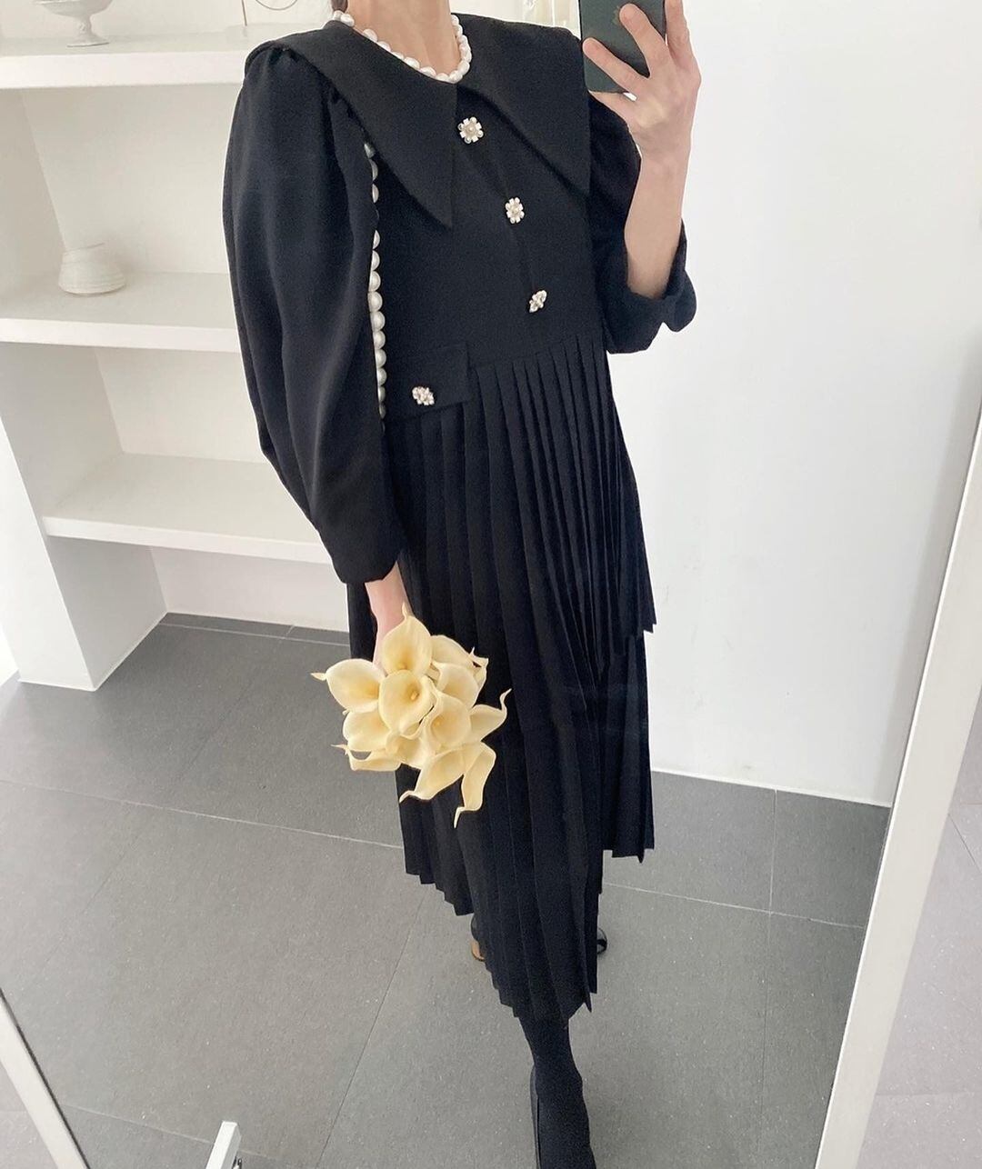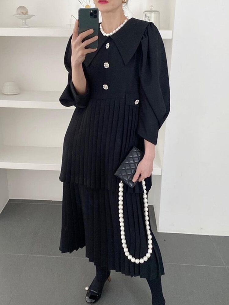 [EWQ] ラペル プリーツ ウエスト スプライシング スウィート ドレス長袖シックボタン ティアード ドレス春秋 Vestido ロング レッド 大人ガーリー キュート カジュアル スプリング 春物 オータム 秋物