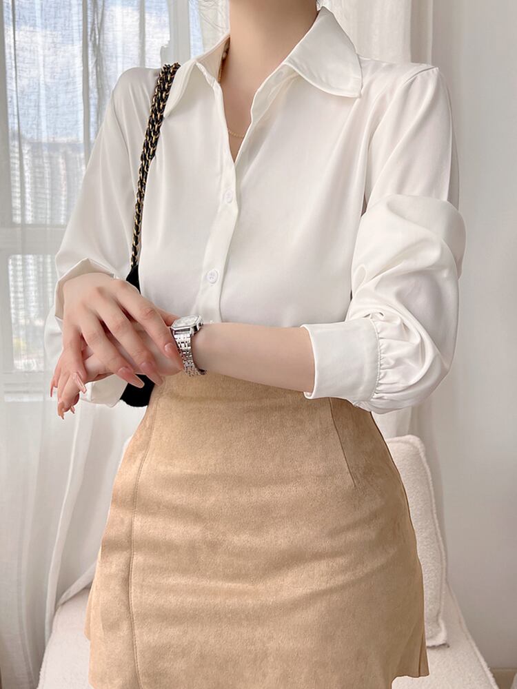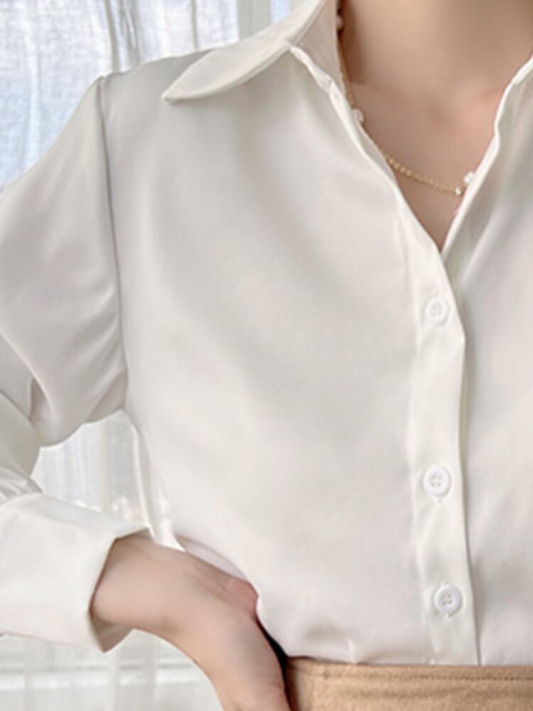 【EWQ】シンプル長袖レディースゆったり白トップスオフィスシャツシングルブレストブラウス春秋 ロング ホワイト スプリング 春物 オータム 秋物 会社 学校 通勤や通学にも