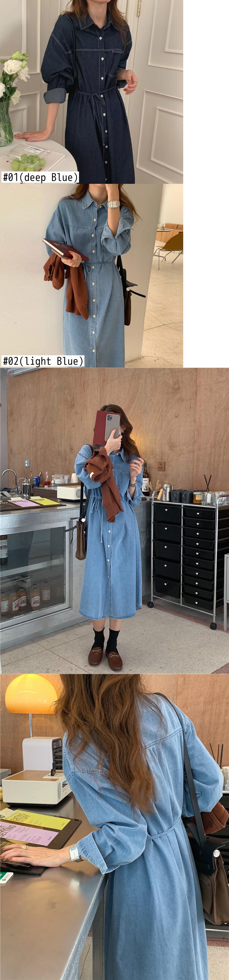 [EWQ] シックレースアップシャツデニムドレス長袖 A ラインマキシドレス春秋オールマッチ Vestido Y6472 ロング スプリング 春物 オータム 秋物 Aライン