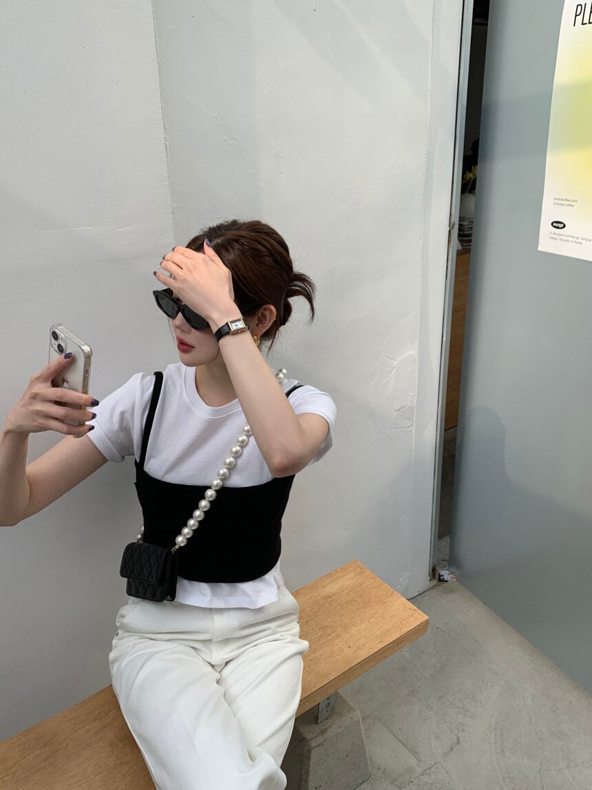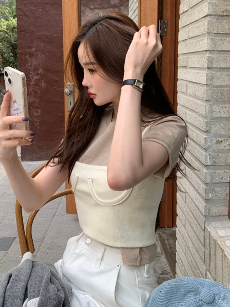 [EWQ] 無地半袖 Tシャツノースリーブベストトップツーピーススーツ夏スリム Tシャツ 560 ショート ハーフスリーブ サマー 夏物 ソリッドカラー