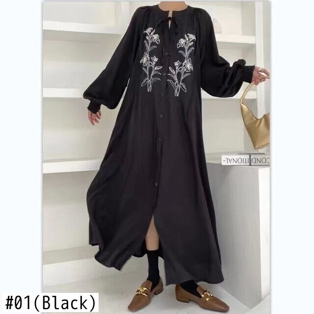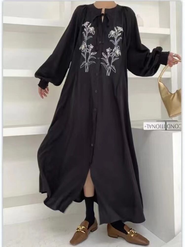 [EWQ] 刺繍レースアップドレスシングルブレストコントラストマキシドレス春秋緩い Vestido 6842 スプリング 春物 オータム 秋物