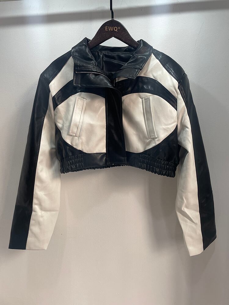 【EWQ】ストリート レタープリント PUレザー ジャケット コントラストカラー パッチワーク ジャケット ショートコート 春秋 トップス 52 スプリング 春物 オータム 秋物