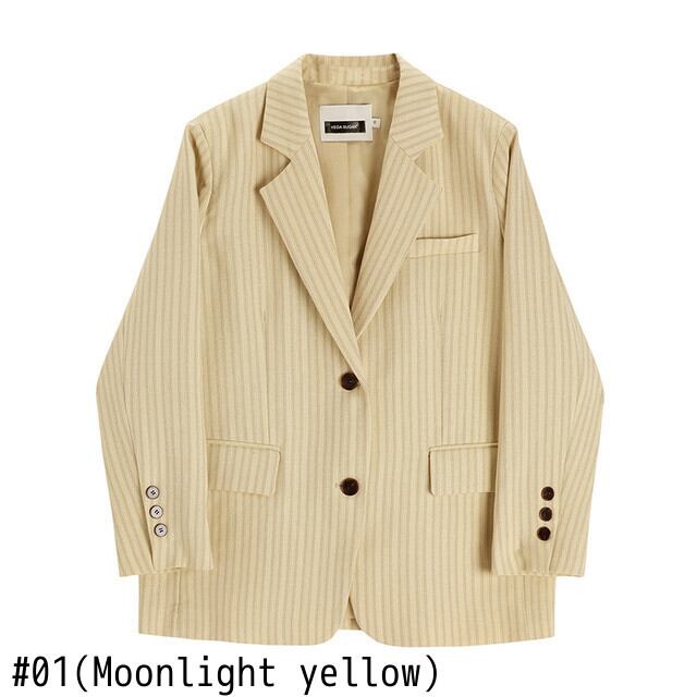 [EWQ] レディース ストライプ シック ボタン ルーズ ブレザー コート 春 秋 ノッチ付き 長袖 コントラストカラー トップス ロング スプリング 春物 オータム 秋物