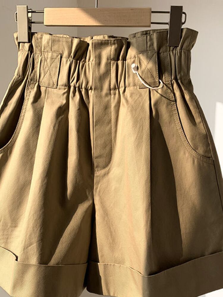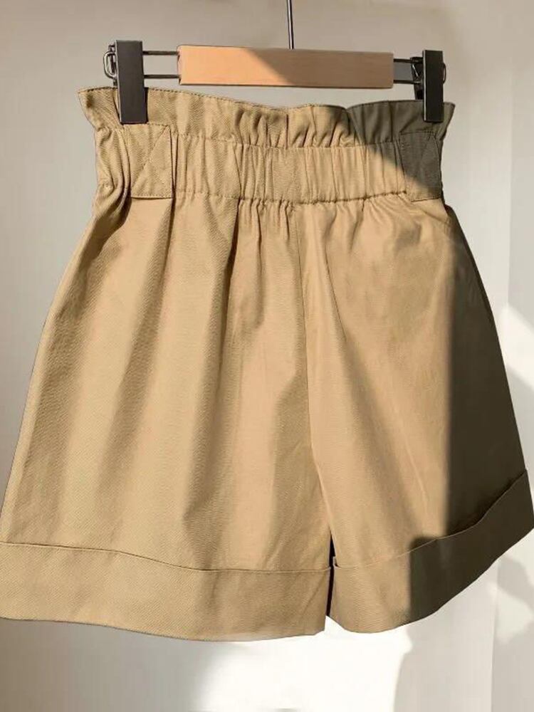 [EWQ] プリーツウエストスーツショーツ夏無地ショートパンツオールマッチ服 サマー 夏物 ブルマー ソリッドカラー