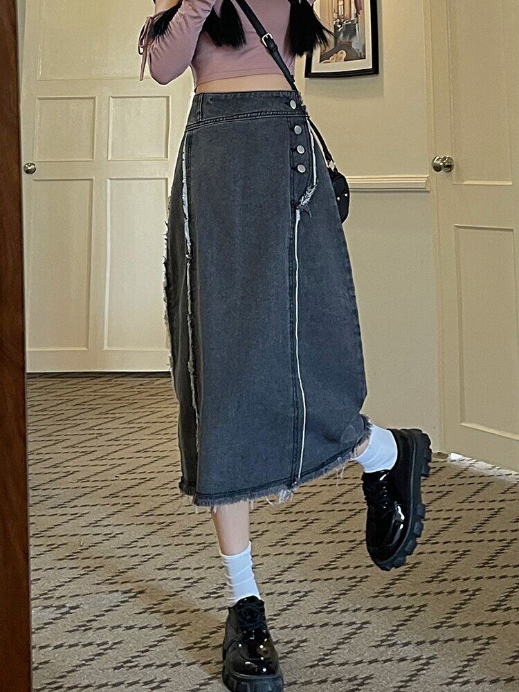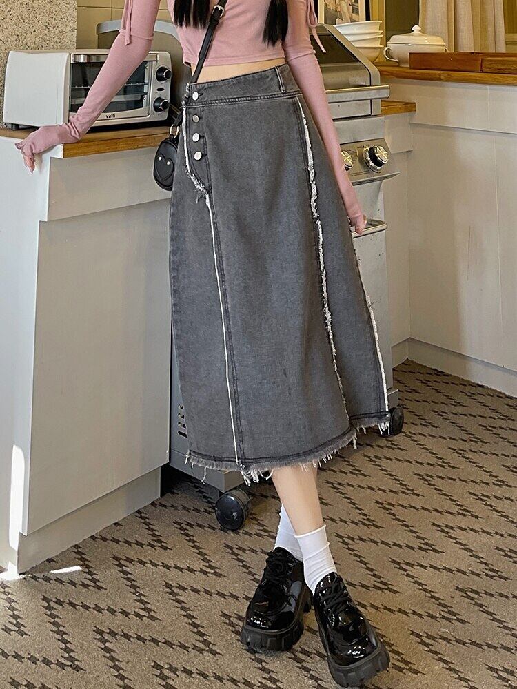 [EWQ] バリデニムスカート春秋 203 レジャーブルーウエスト A ラインゆったりミディスカート 10AB5451 スプリング 春物 オータム 秋物 Aライン