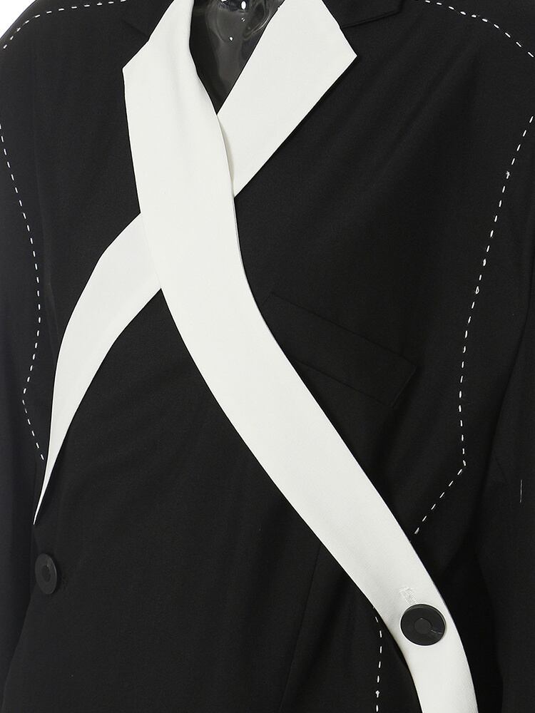 [EWQ] レディース トップス トップステッチ クロス ビッグサイズ ブレザー ラペル 長袖 ジャケット 潮 秋 オフィス レディー コート 16Y230 ロング オータム 秋物 会社 学校 通勤や通学にも