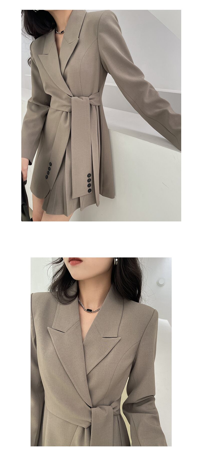 [EWQ] ノッチシングル ブレスト ブレザー ドレス春秋包帯ブレザー ドレス カーキ ドレス スプリング 春物 オータム 秋物