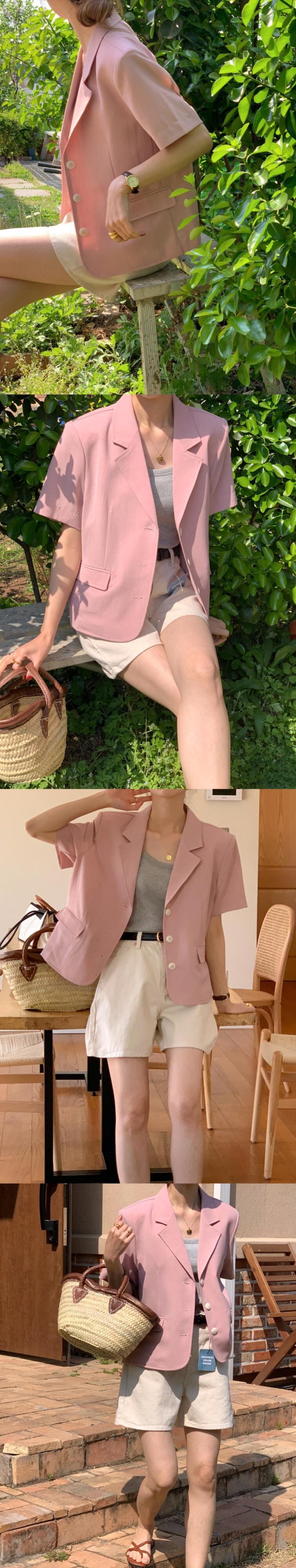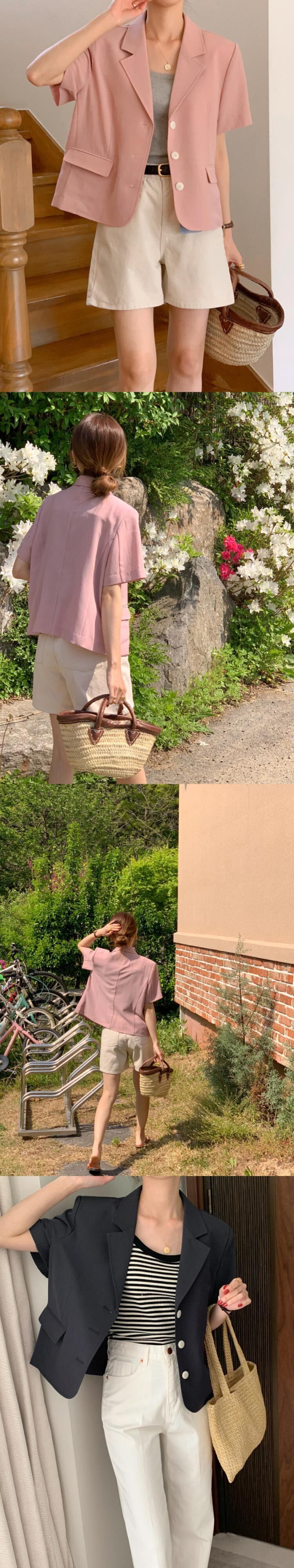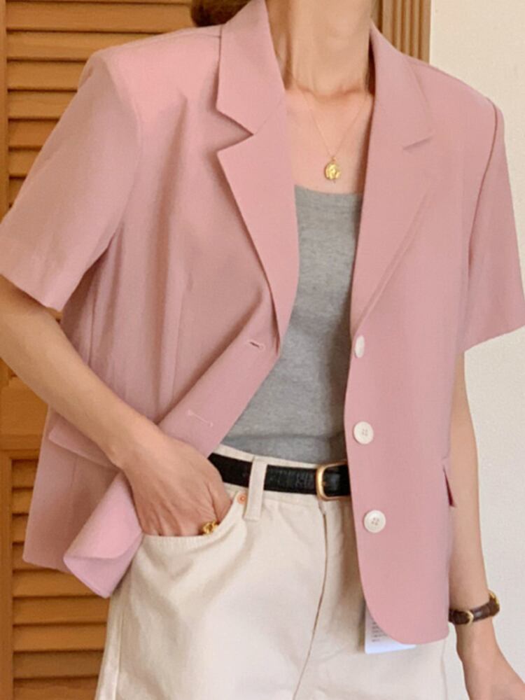[EWQ] レディース ラペル シングルブレスト ブレザー コート ゆったり 半袖 スーツ ジャケット 春夏 無地 服 ショート ハーフスリーブ スプリング 春物 サマー 夏物 ソリッドカラー