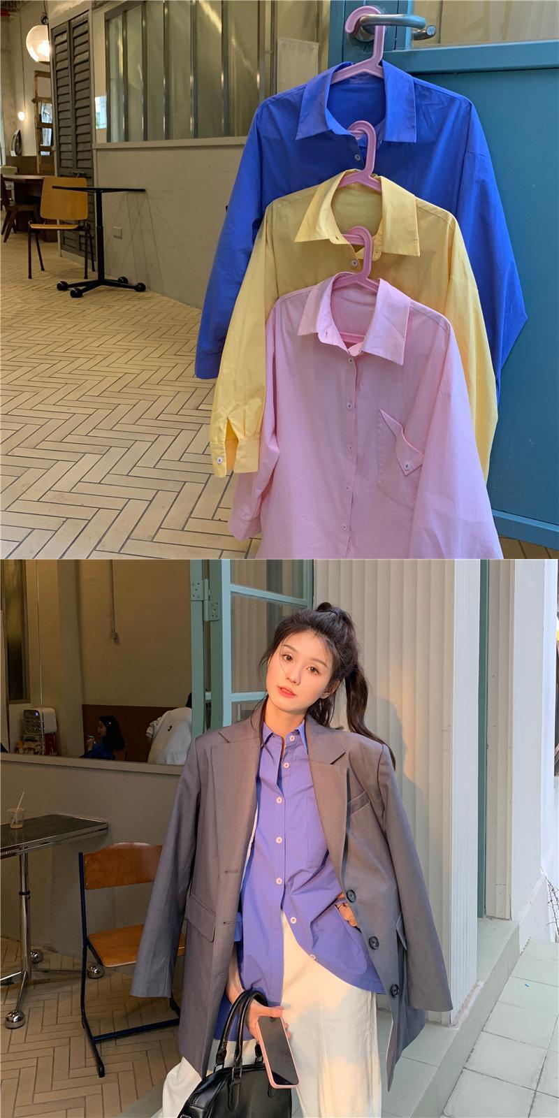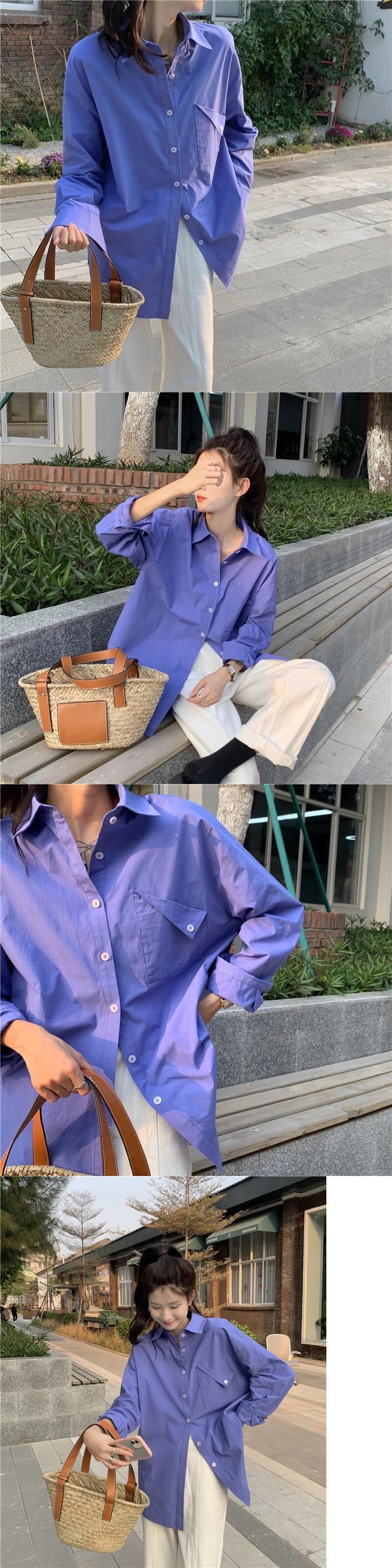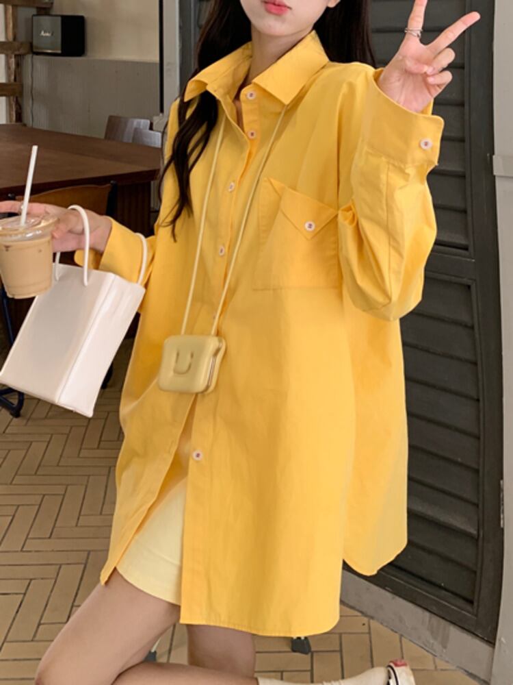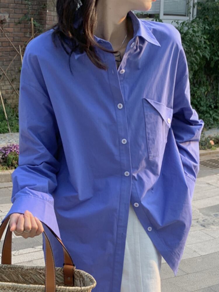 [EWQ] ミニマリストソリッドカラーシャツデイリーレジャー春秋トレンドシックポケットブラウストップス 6669 スプリング 春物 オータム 秋物