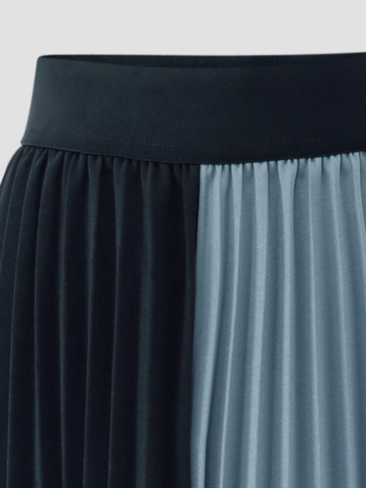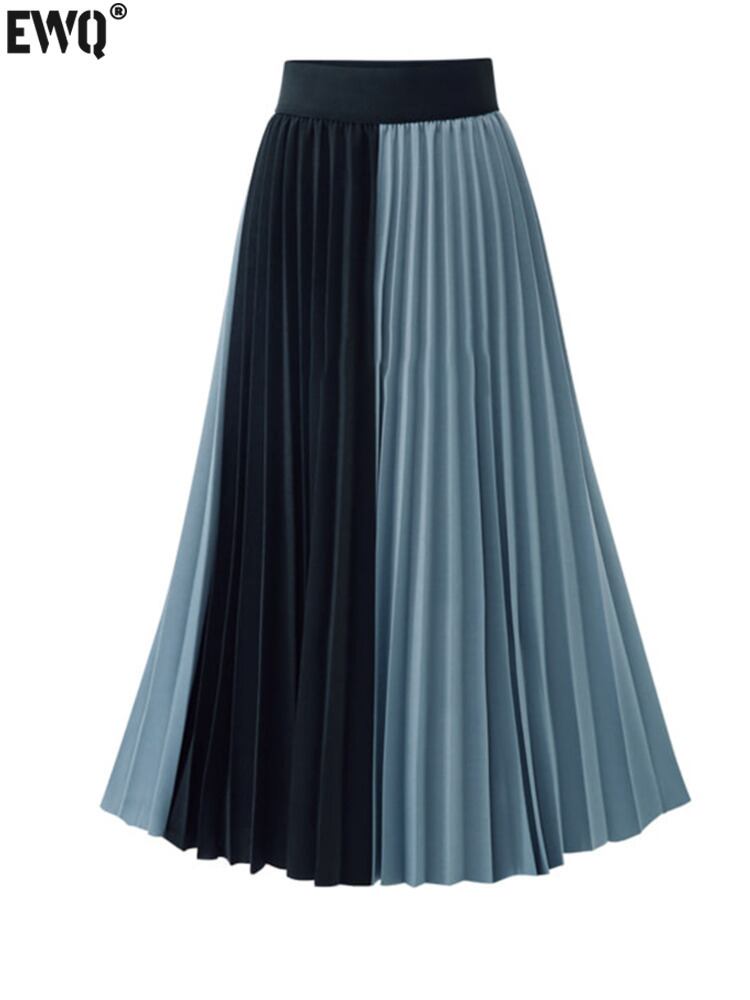 [EWQ] カラーブロッキングプリーツスカートウエストミッドカーフスカート春夏潮オールマッチ服 6Y7818 スプリング 春物 サマー 夏物