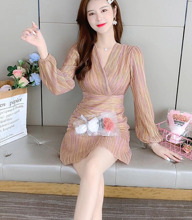 [EWQ] スウィート V ネックドレスセクシーコントラストカラーミニドレス春夏イブニングパーティースリム Vestido 16Y6486 大人ガーリー キュート カジュアル スプリング 春物 サマー 夏物 Vネック