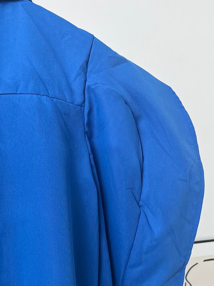 【EWQ】トレンドレディースロングポインテッドカラーパフスリーブブルーシャツコートオフィストップスゆったりY7028 会社 学校 通勤や通学にも