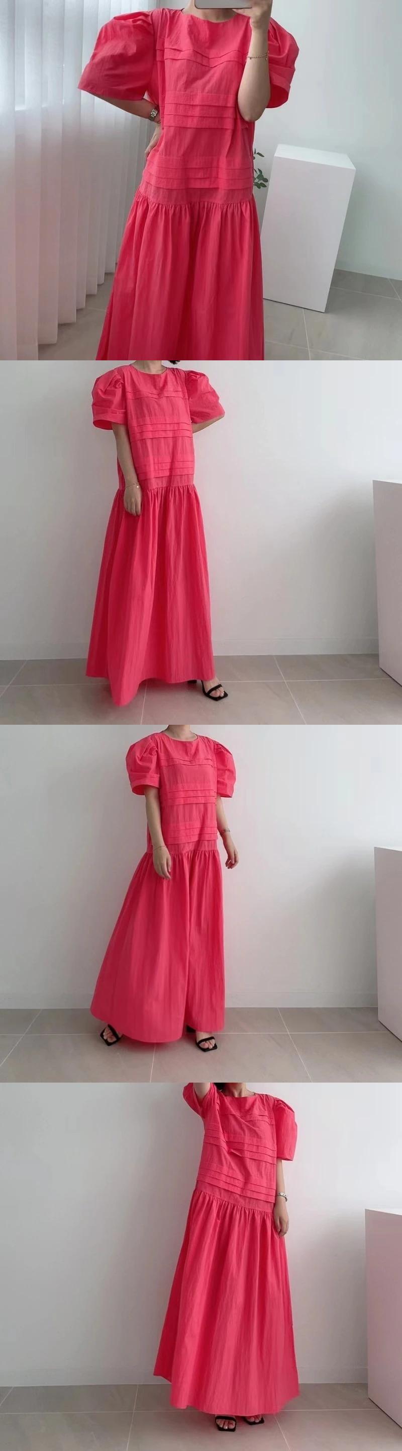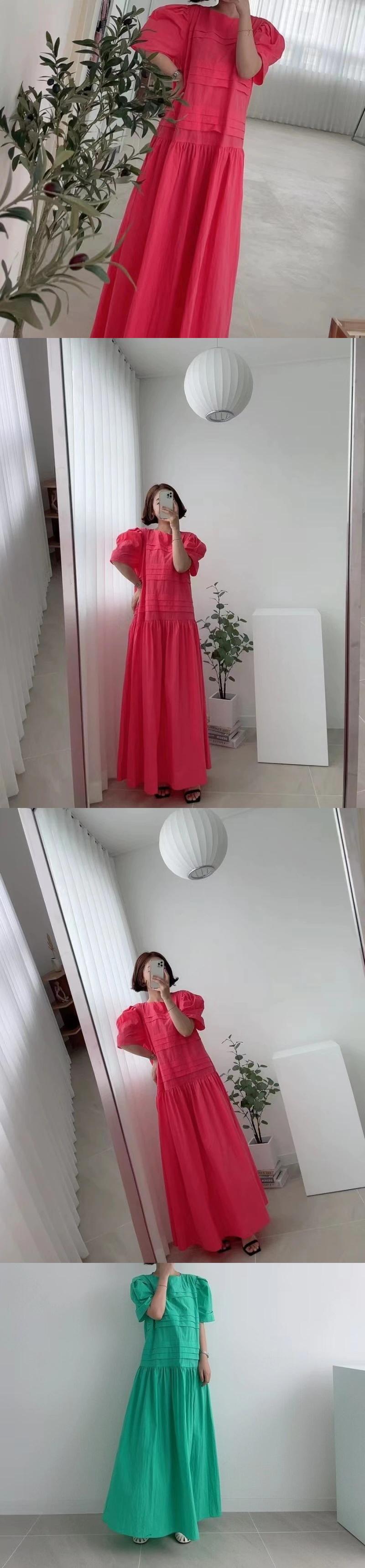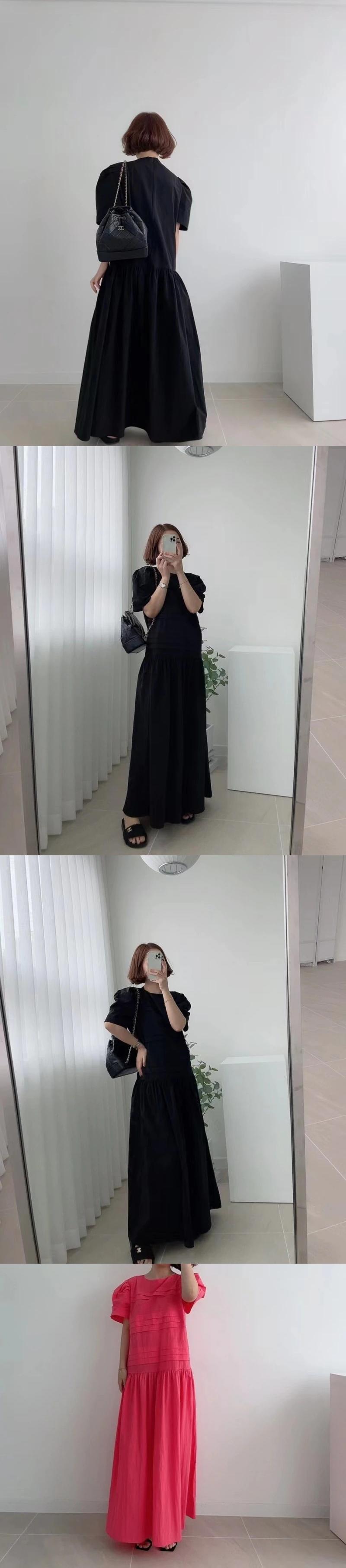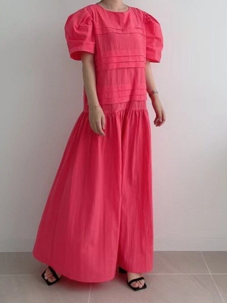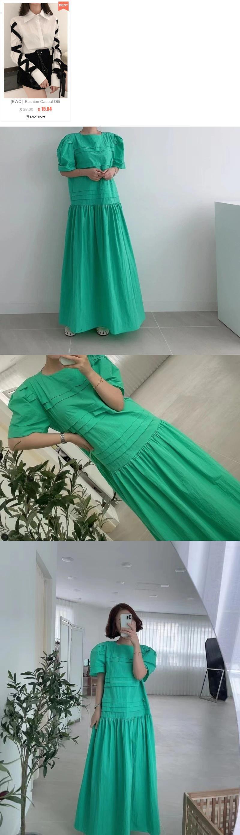 [EWQ] 無地フリルスプライスドレス半袖ルーズ因果マキシドレス夏服 ショート ハーフスリーブ サマー 夏物 ソリッドカラー