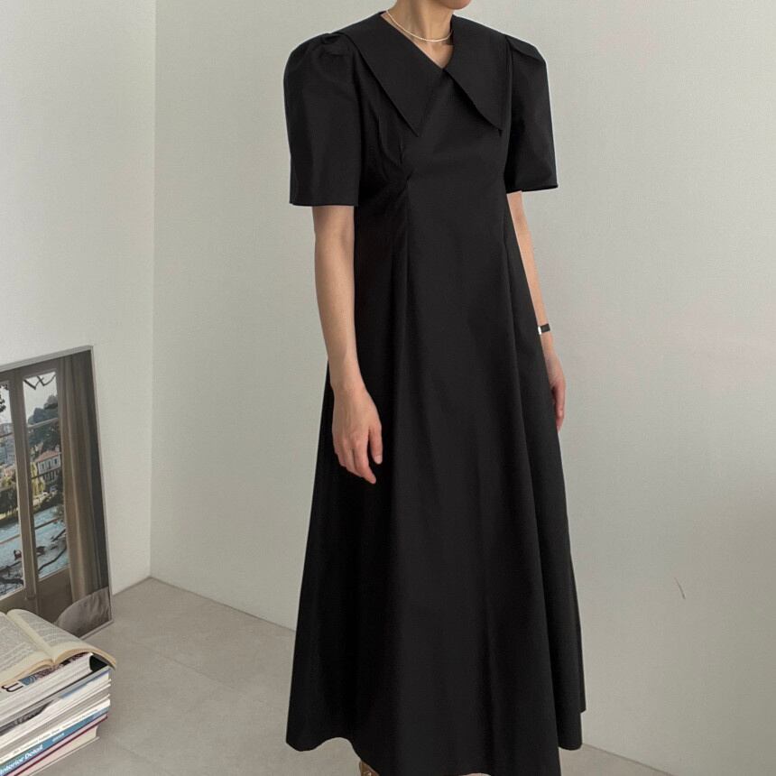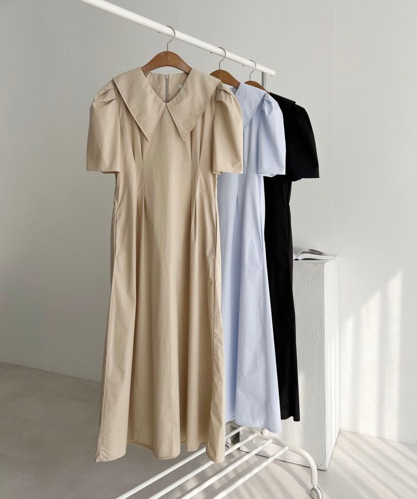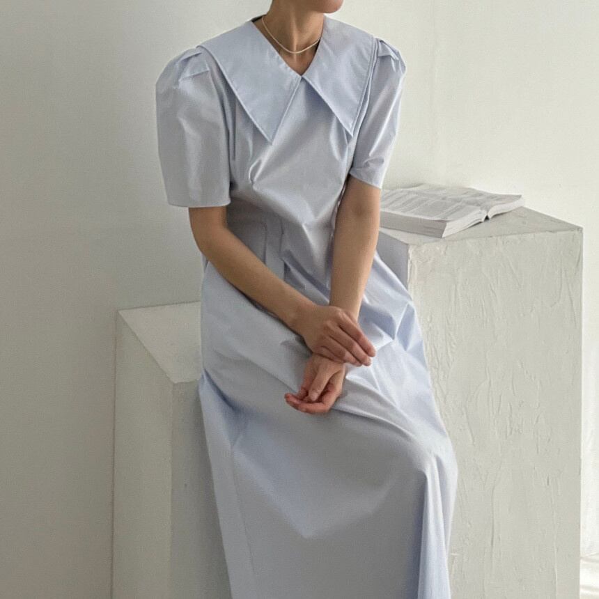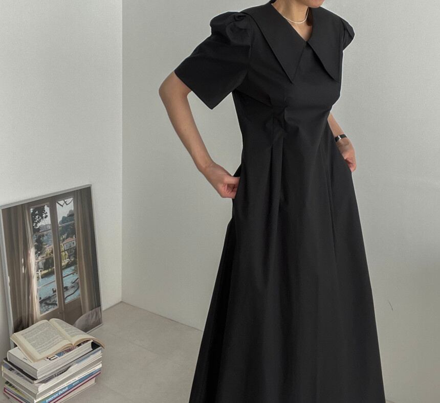 [EWQ] ピーターパン襟ポケット ドレスプリーツ ウエスト ドレス夏潮半袖 Vestido 566 ショート ハーフスリーブ サマー 夏物