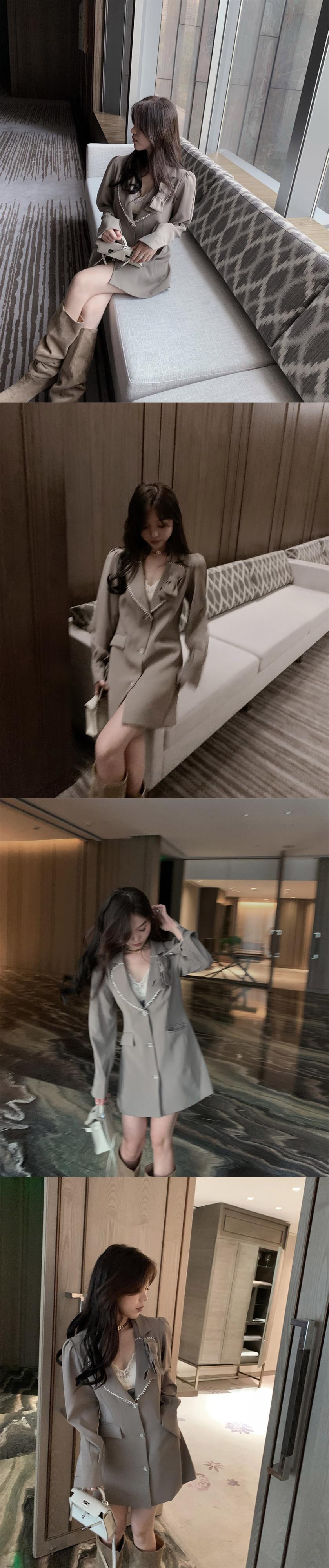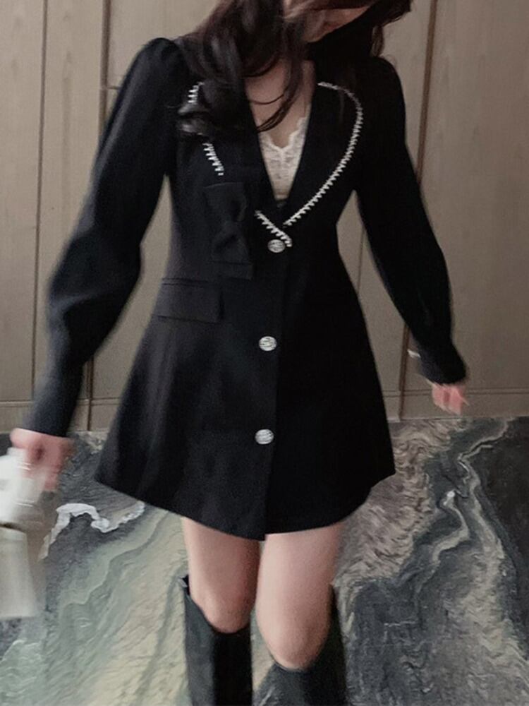 【EWQ】ダイヤラプルボウスプライシング ブレザーコート 春秋 長袖 ゆったり シングルブレスト スーツ ジャケット トップス 7334 ロング リボン スプリング 春物 オータム 秋物