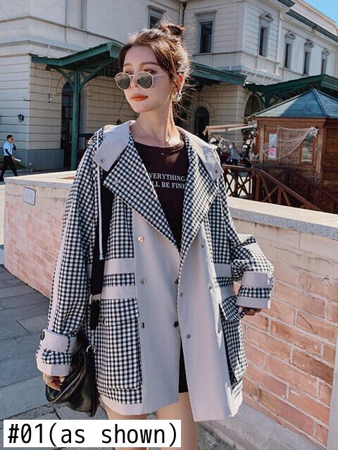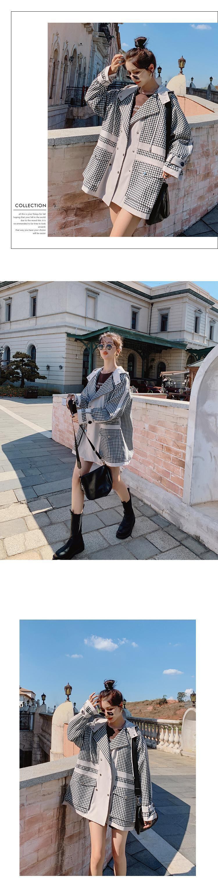 【EWQ】ターンダウンカラー パッチワーク ロングスリーブ アウター 春 コントラスト チェック チェック トレンド ジャケット コート 長袖 スプリング 春物