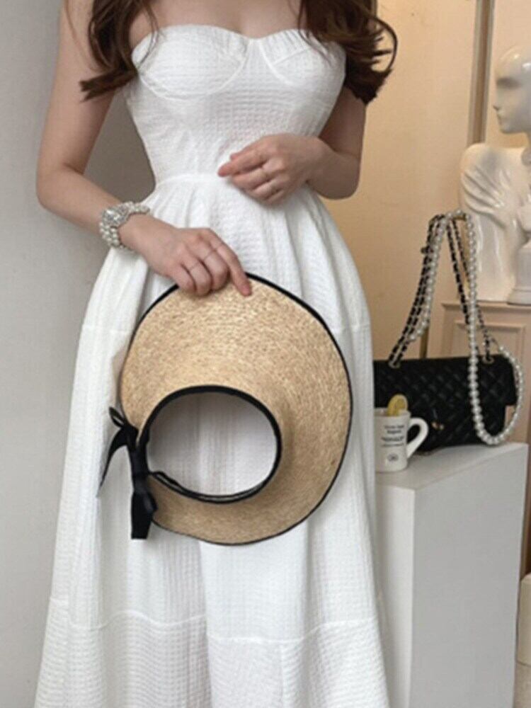 [EWQ] ストラップレス背中開いた A ライン ドレス夏できるパーティー ドレス無地 Vestido 6Y7164 サマー 夏物 Aライン ソリッドカラー