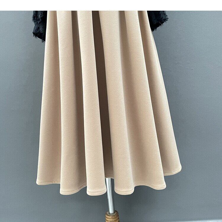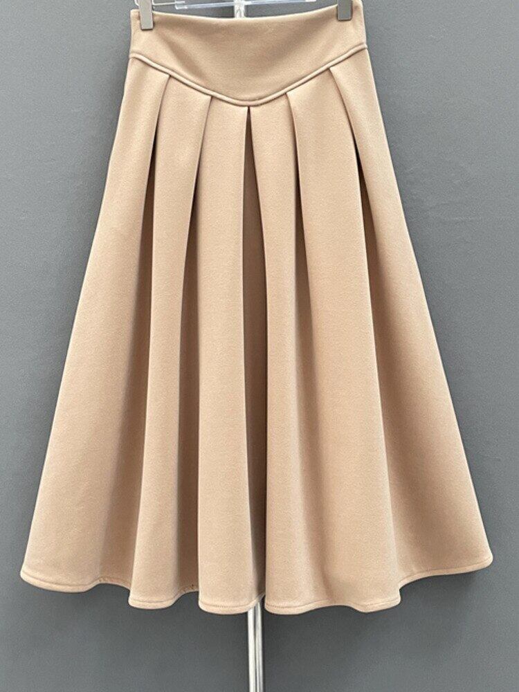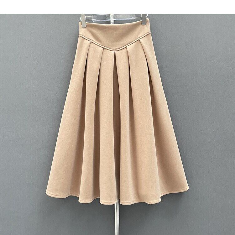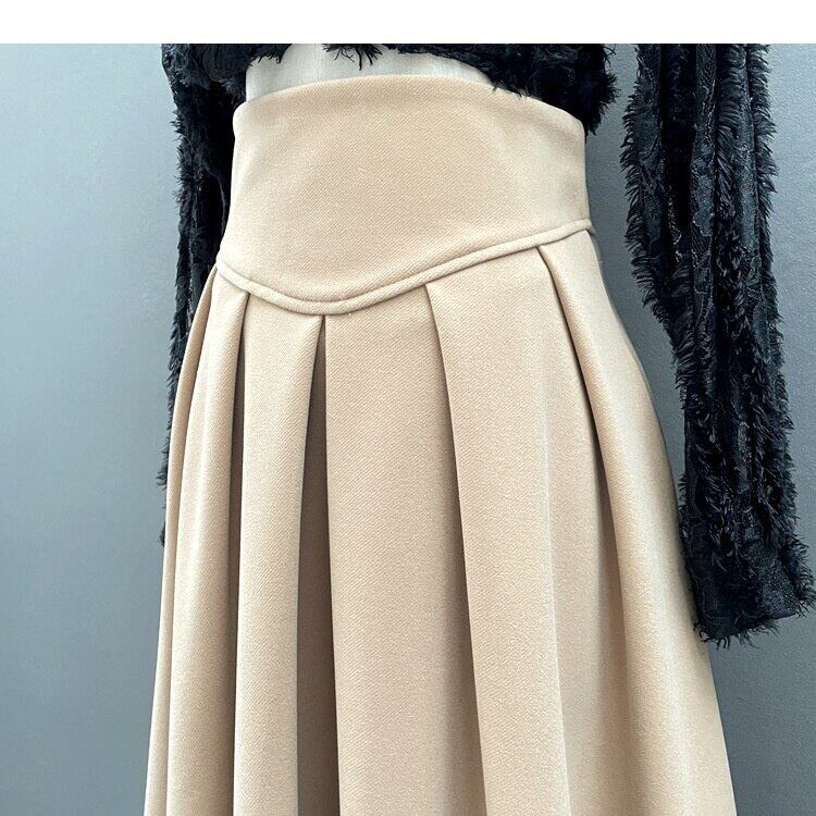 [EWQ] プリーツ ウエスト ソフト スカート ミッドカーフ スカート春秋無地ファルダ 16Y6142 スプリング 春物 オータム 秋物 ソリッドカラー