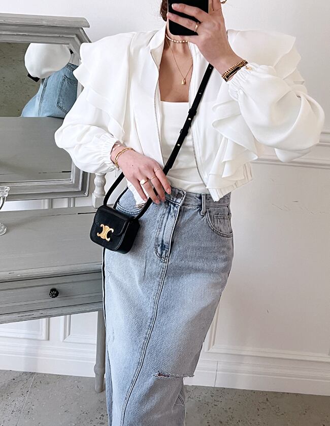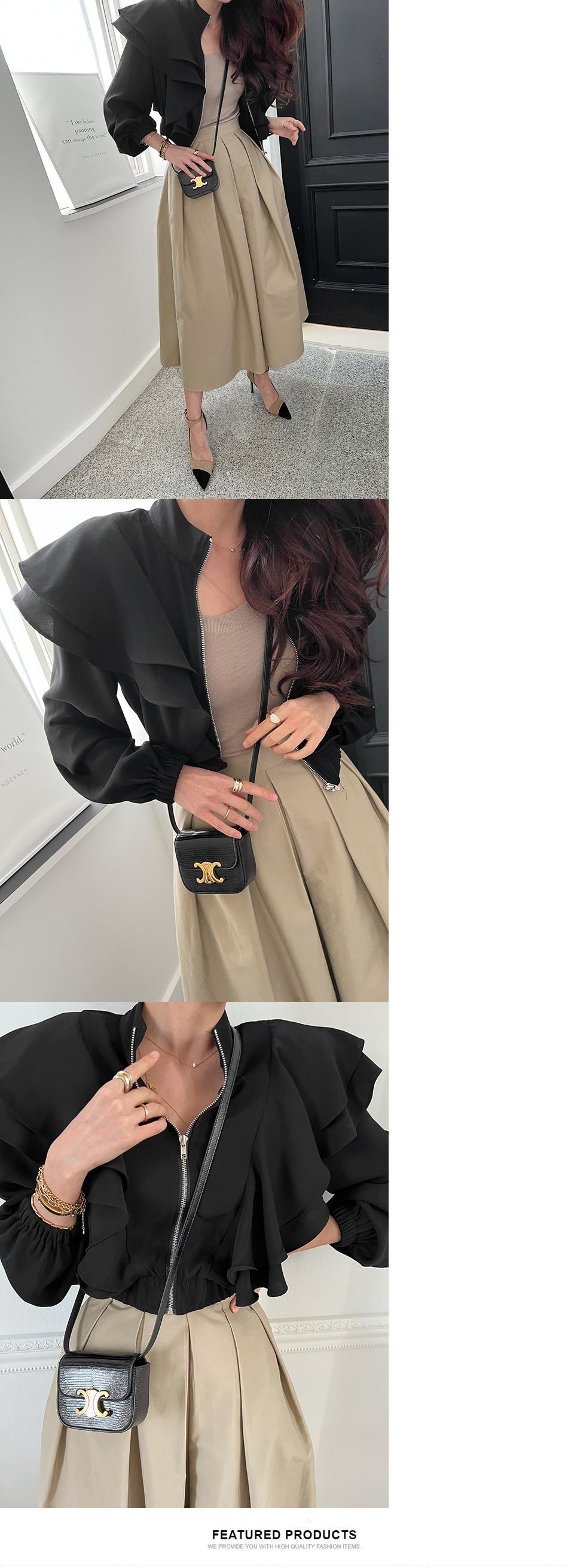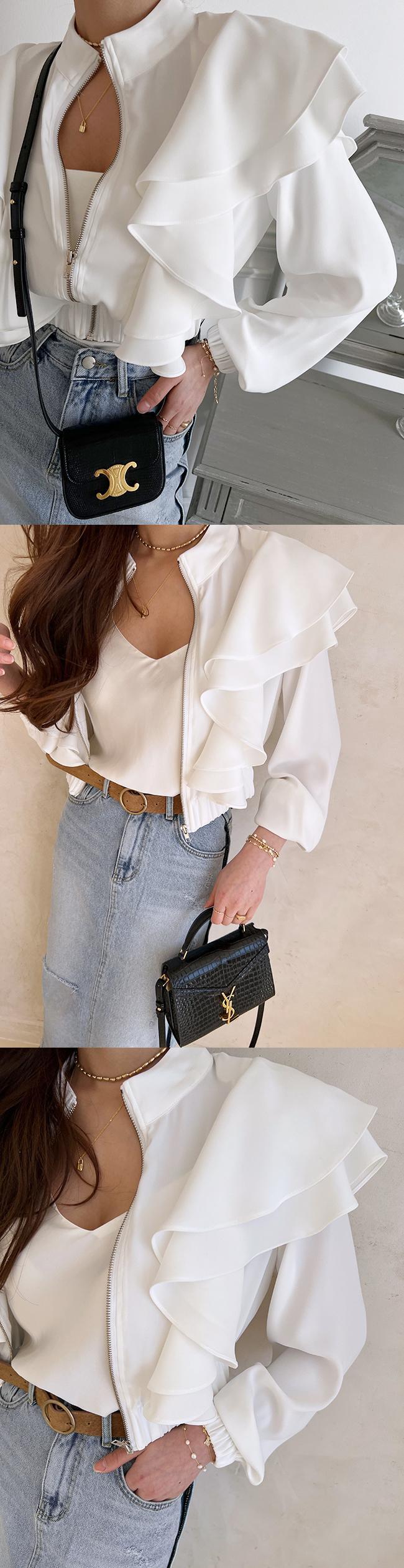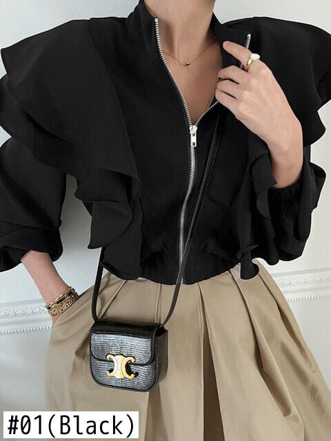 [EWQ] フリルスプライスジャケット春秋スタンドネックジッパージャケットコート無地トップ 16Y7312 スプリング 春物 オータム 秋物 ソリッドカラー