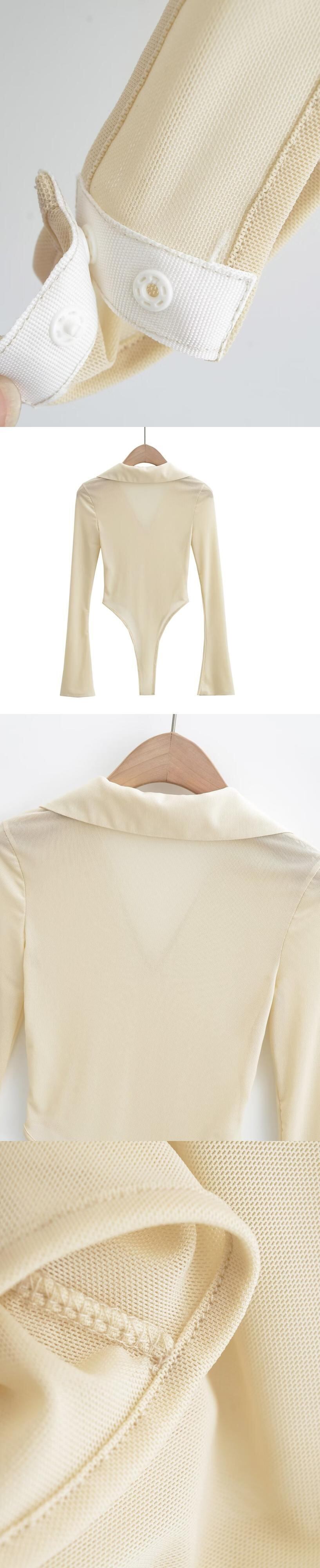 [EWQ] セクシーメッシュ黒ボディスーツ長袖 V ネックスキニーボディロンパース夏 Y2k トップクラブパーティージャンプスーツ透明 Y6194 ロング ブラック サマー 夏物 Vネック
