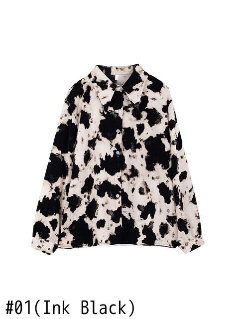 [EWQ] プリント カラー シャツ黒長袖シックブラウス トップ春秋シングル ブレスト トップス Y6281 ロング ブラック スプリング 春物 オータム 秋物