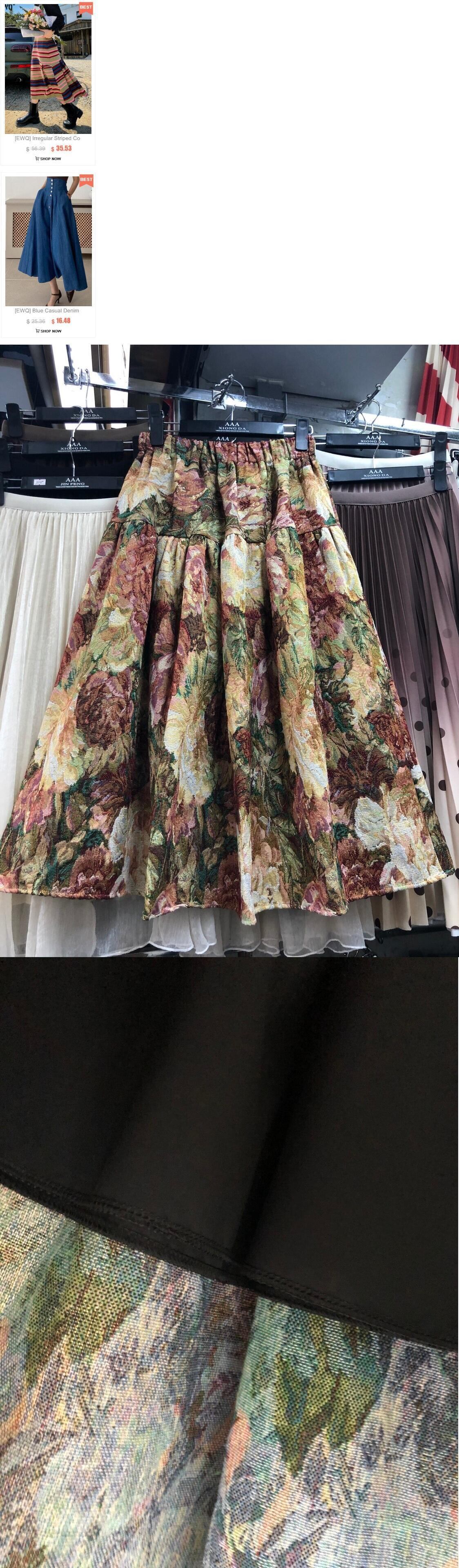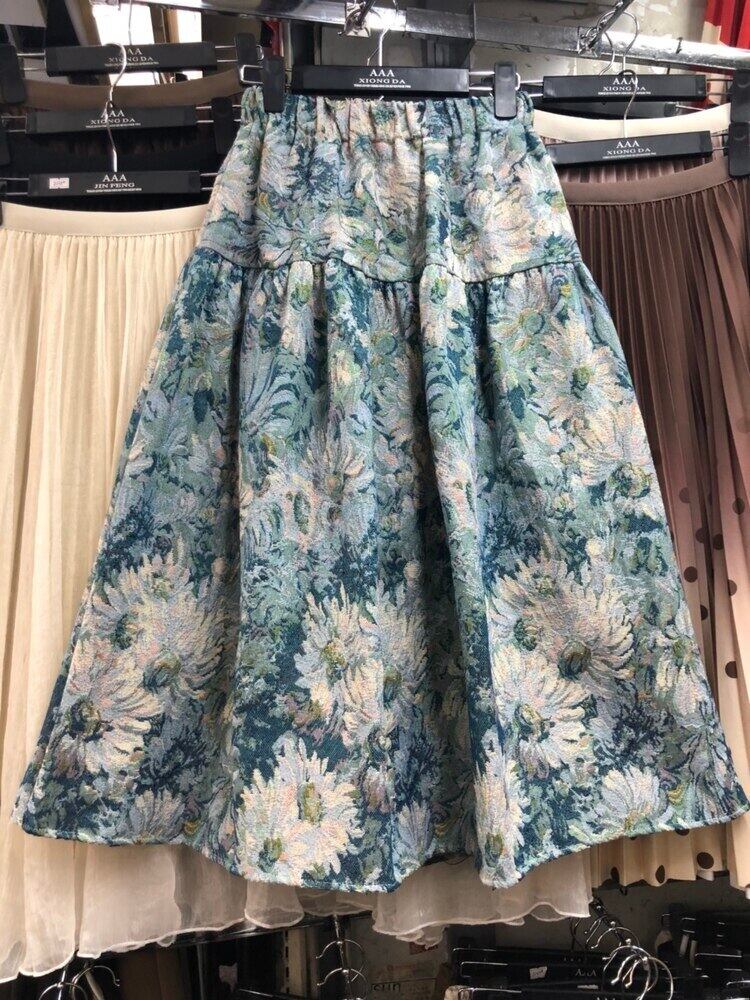 [EWQ] レディース プリント コントラスト スカート フラワー プリーツ Aライン スカート 春夏オールマッチ 16Y6249 スプリング 春物 サマー 夏物 フラワーデザイン