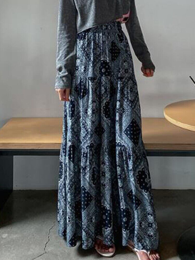 【EWQ】花柄Aラインスカート ウエストゴム ミッドカーフスカート 春夏 ふんわり 因果 コントラスト ファルダス エラスティック 伸縮 スプリング 春物 サマー 夏物
